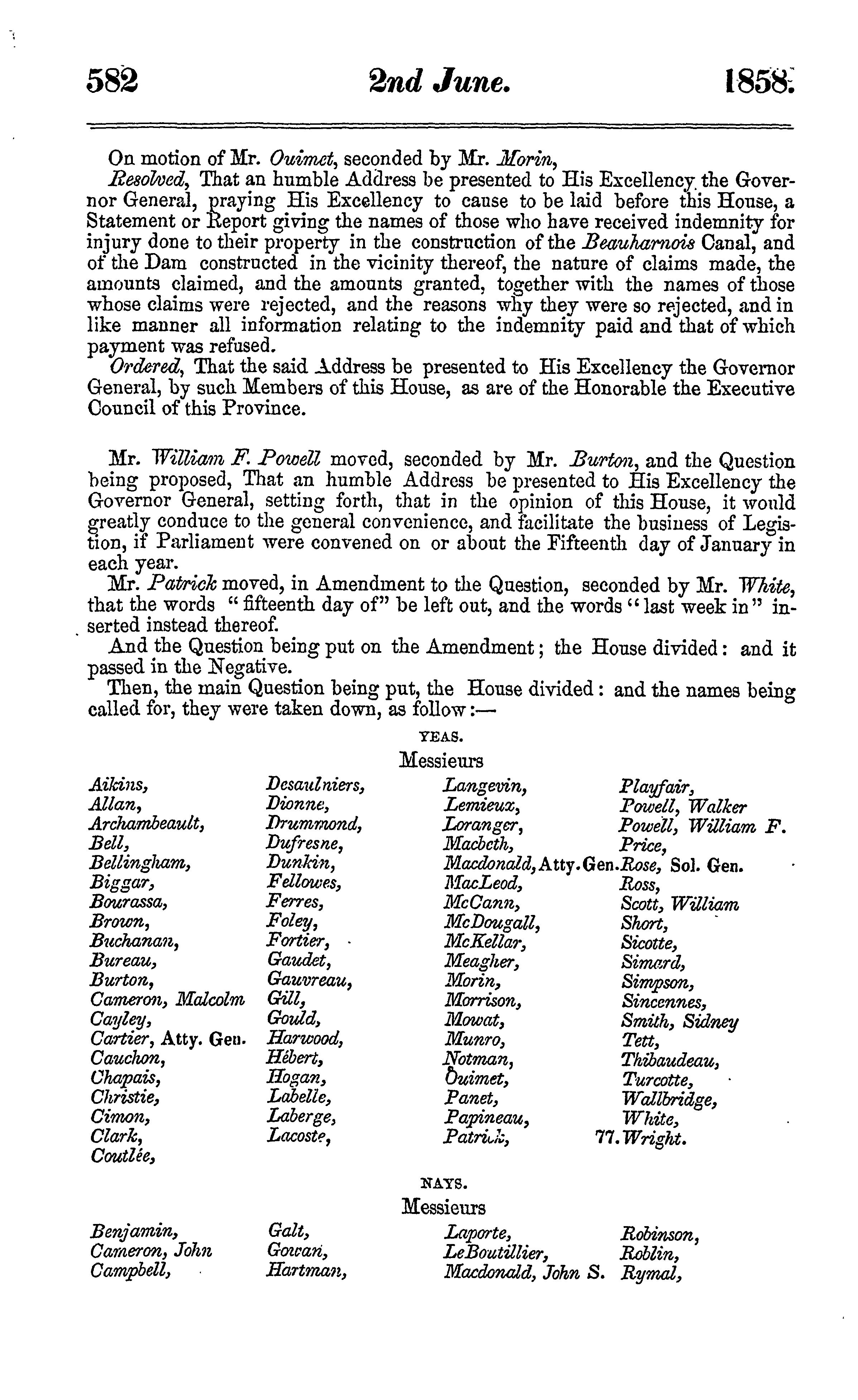 Journals of the Legislative Assembly of the Province of Canada from the 1st June to the 16th August, 1858 ... in the twenty-first and twenty-second years of the reign of ... Queen Victoria : being the 1st session of the 6th Provincial Parliament of Canada ; part II : 1858 (pt. 2)