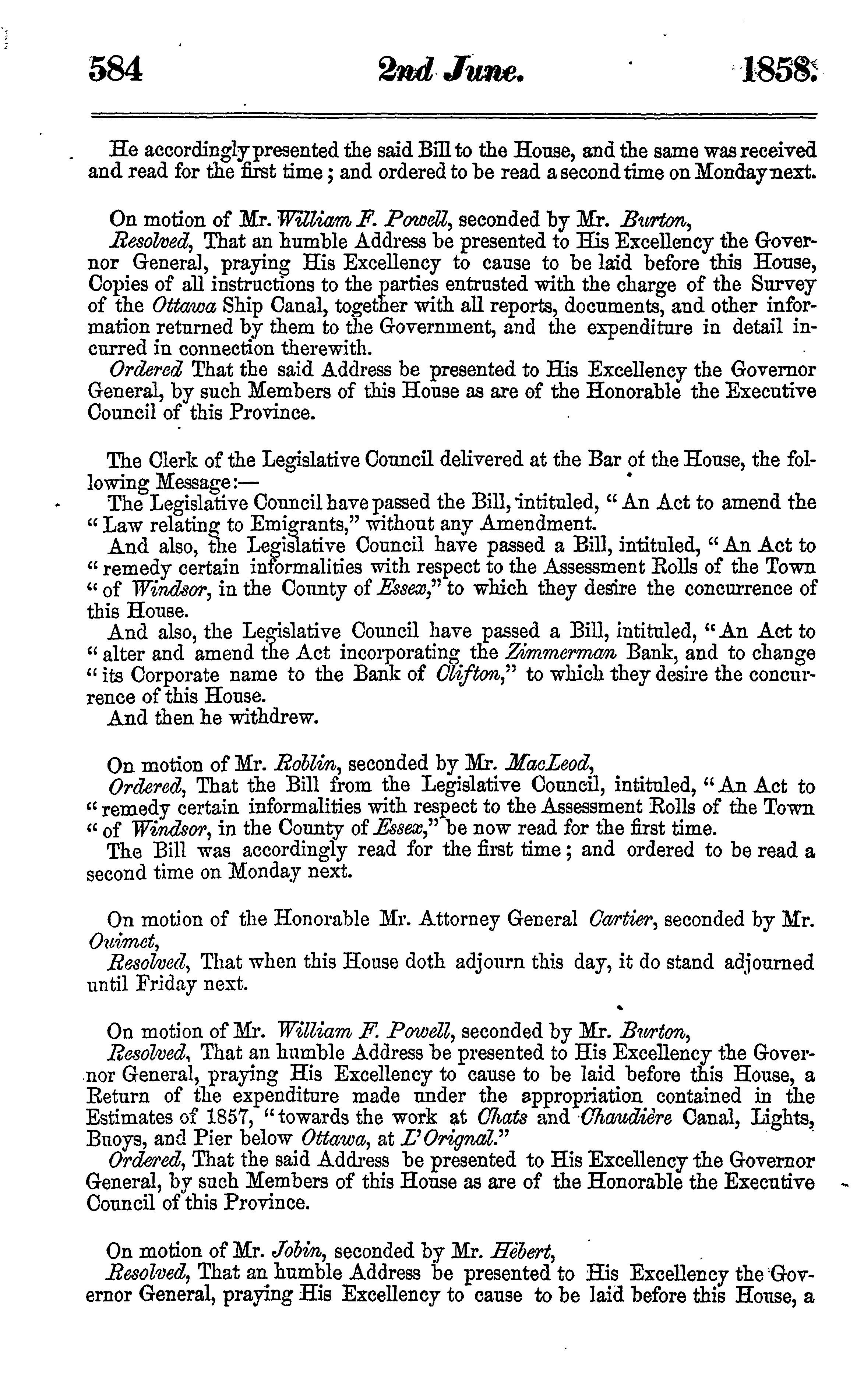 Journals of the Legislative Assembly of the Province of Canada from the 1st June to the 16th August, 1858 ... in the twenty-first and twenty-second years of the reign of ... Queen Victoria : being the 1st session of the 6th Provincial Parliament of Canada ; part II : 1858 (pt. 2)