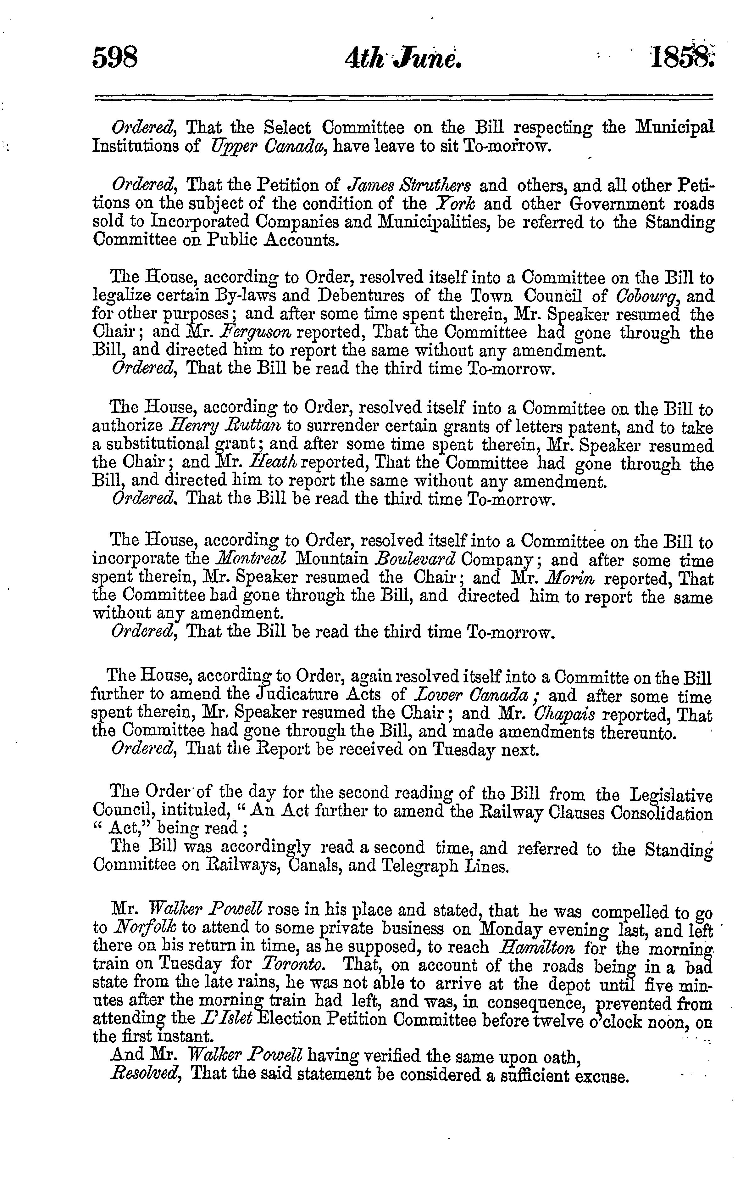 Journals of the Legislative Assembly of the Province of Canada from the 1st June to the 16th August, 1858 ... in the twenty-first and twenty-second years of the reign of ... Queen Victoria : being the 1st session of the 6th Provincial Parliament of Canada ; part II : 1858 (pt. 2)