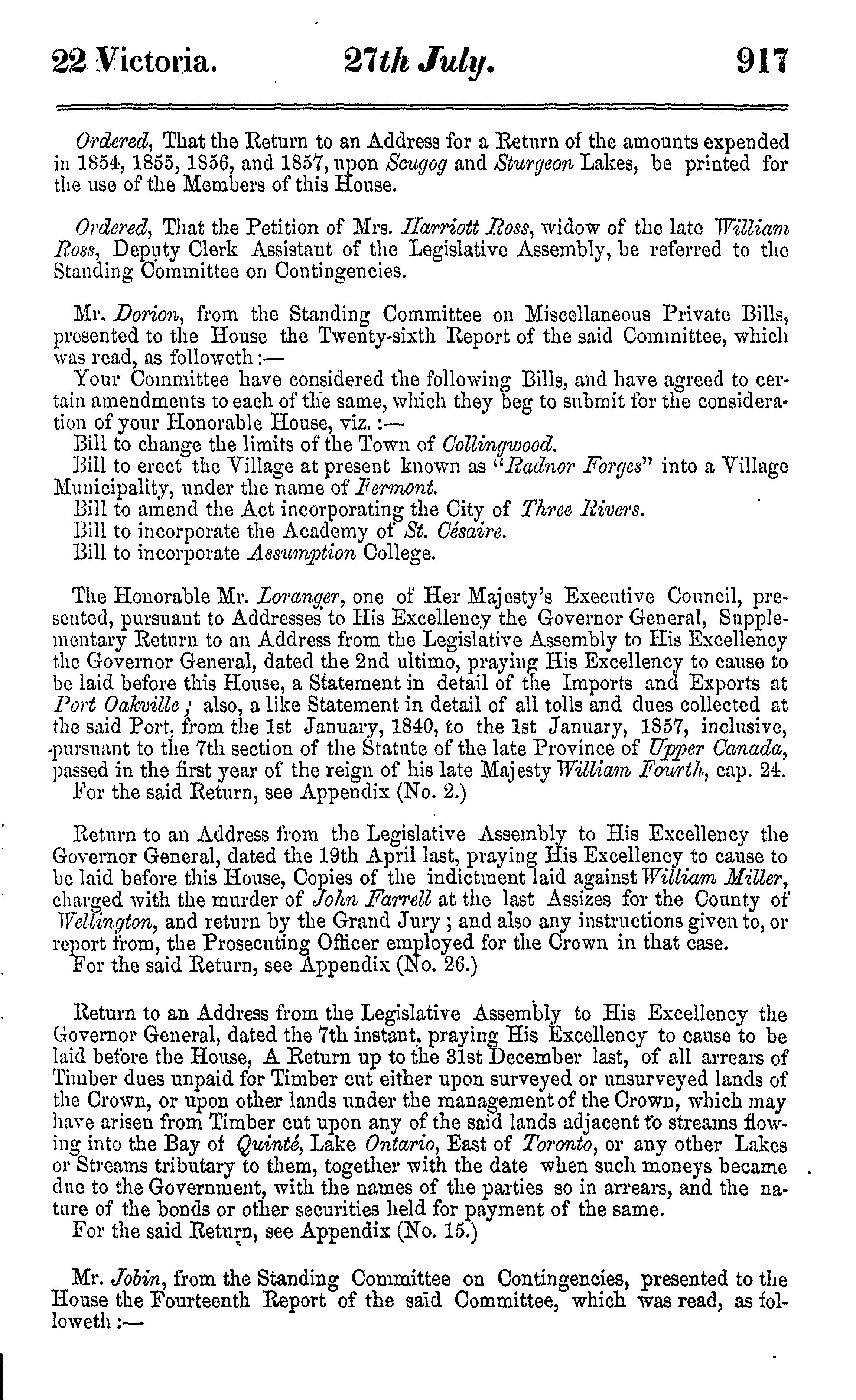 Journals of the Legislative Assembly of the Province of Canada from the 1st June to the 16th August, 1858 ... in the twenty-first and twenty-second years of the reign of ... Queen Victoria : being the 1st session of the 6th Provincial Parliament of Canada ; part II : 1858 (pt. 2)