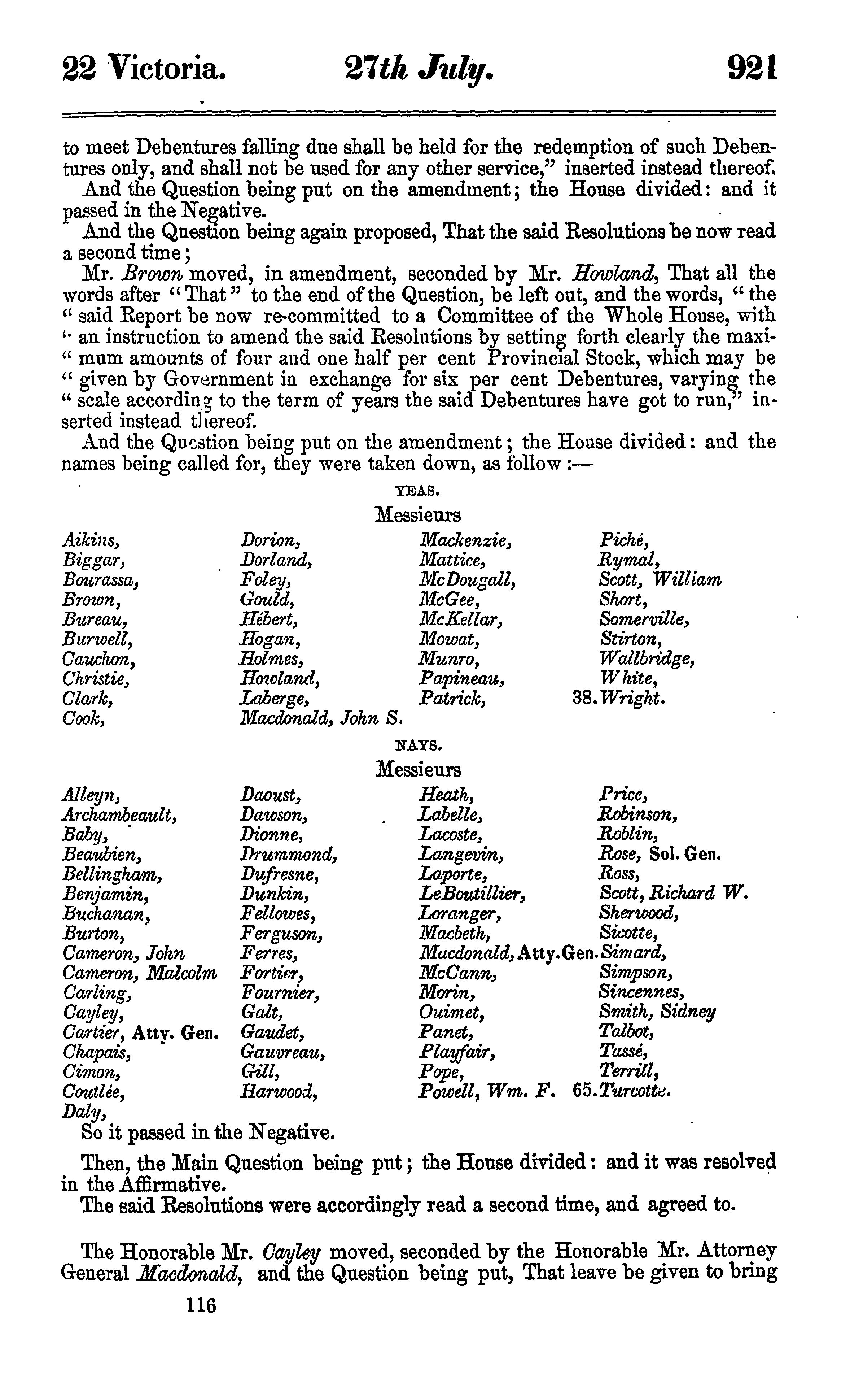 Journals of the Legislative Assembly of the Province of Canada from the 1st June to the 16th August, 1858 ... in the twenty-first and twenty-second years of the reign of ... Queen Victoria : being the 1st session of the 6th Provincial Parliament of Canada ; part II : 1858 (pt. 2)