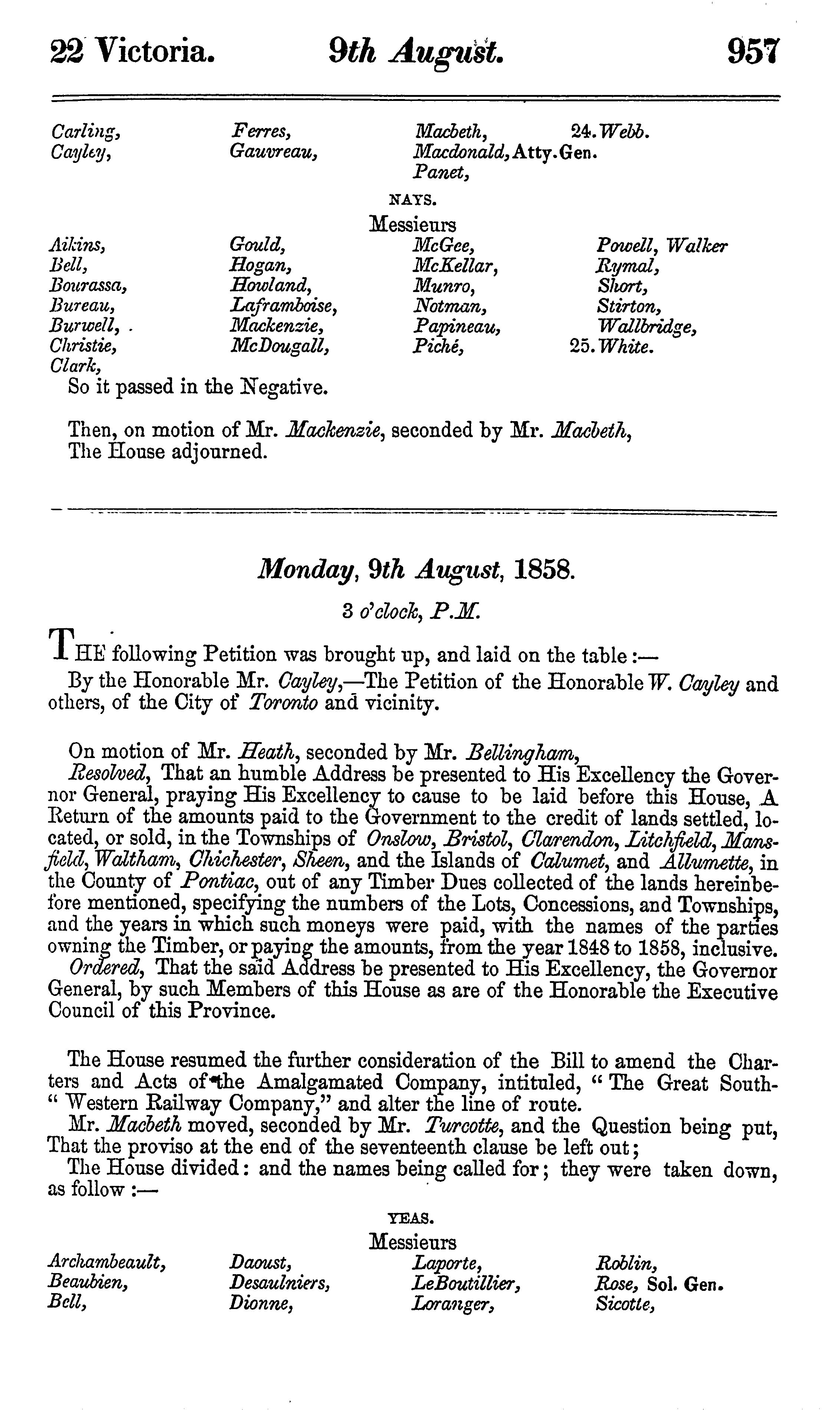 Journals of the Legislative Assembly of the Province of Canada from the 1st June to the 16th August, 1858 ... in the twenty-first and twenty-second years of the reign of ... Queen Victoria : being the 1st session of the 6th Provincial Parliament of Canada ; part II : 1858 (pt. 2)