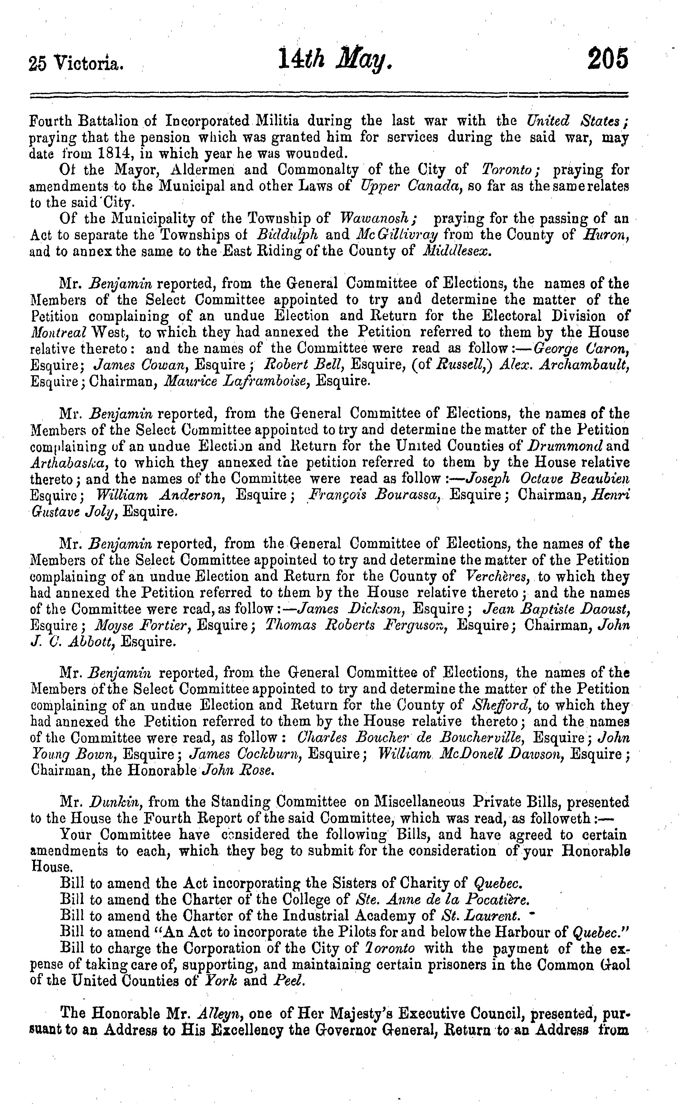 Journals of the Legislative Assembly of the Province of Canada from March 26 to June 9, 1862 ... in the twenty-fifth year of the reign of ... Queen Victoria : being the 1st session of the 7th Provincial Parliament of Canada : 1862
