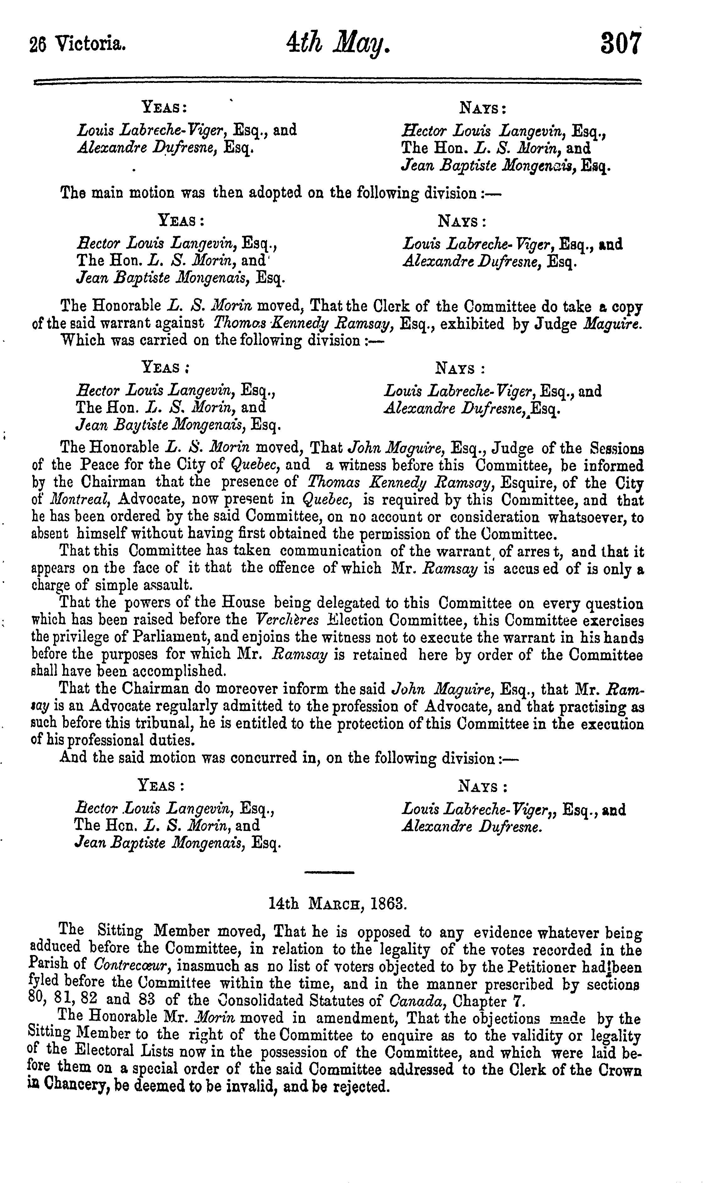 Journals of the Legislative Assembly of the Province of Canada from February 12 to May 12, 1863 ... in the twenty-sixth year of the reign of ... Queen Victoria : being the 2nd session of the 7th Provincial Parliament of Canada : 1863