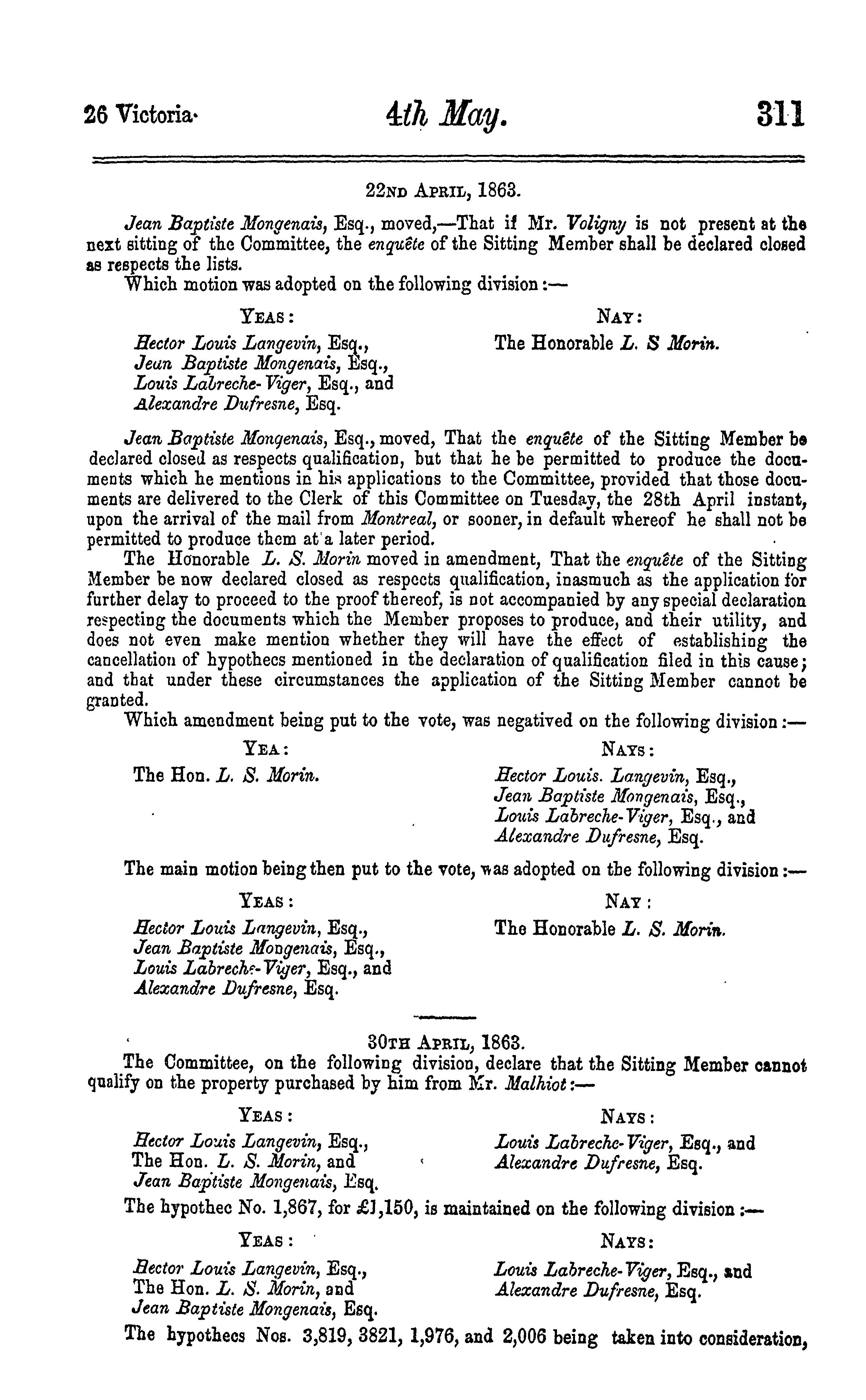 Journals of the Legislative Assembly of the Province of Canada from February 12 to May 12, 1863 ... in the twenty-sixth year of the reign of ... Queen Victoria : being the 2nd session of the 7th Provincial Parliament of Canada : 1863
