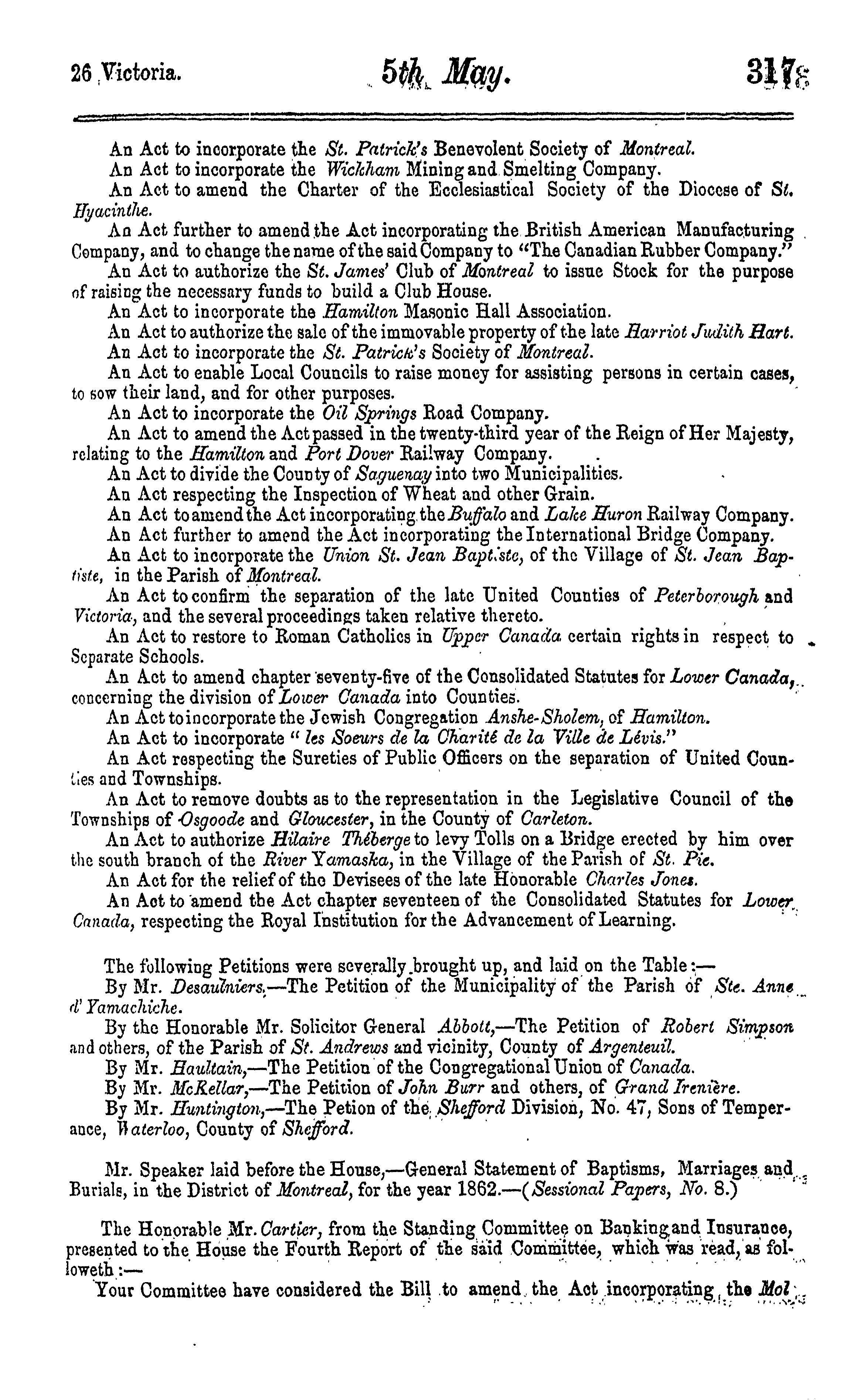 Journals of the Legislative Assembly of the Province of Canada from February 12 to May 12, 1863 ... in the twenty-sixth year of the reign of ... Queen Victoria : being the 2nd session of the 7th Provincial Parliament of Canada : 1863