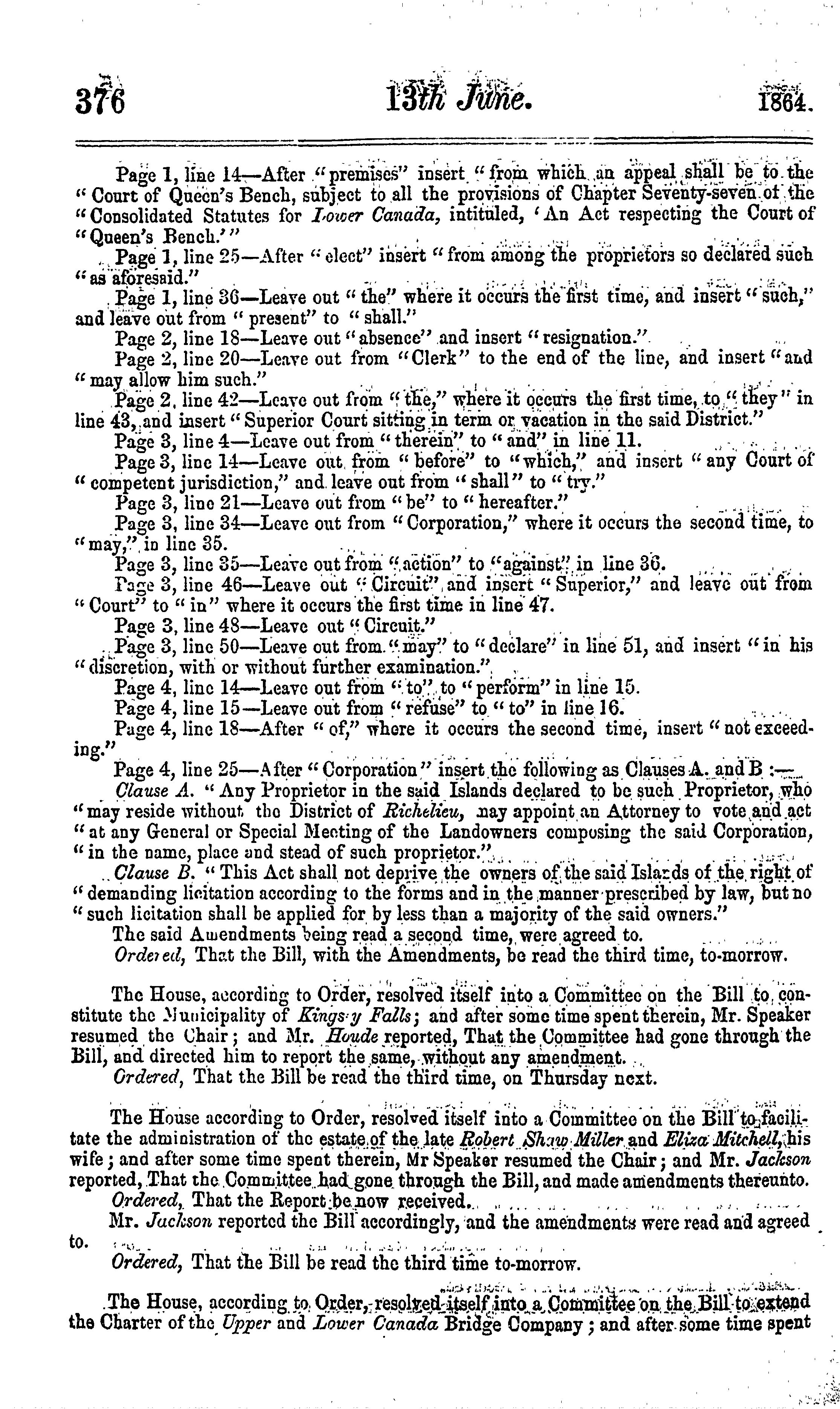 Journals of the Legislative Assembly of the Province of Canada ... : Journals of the Legislative Assembly of the Province of Canada from February 19 to June 30, 1864 ... in the twenty-seventh and twenty-eighth years of the reign of ... Queen Victoria : being the 2nd session of the 8th Provincial Parliament of Canada : 1864