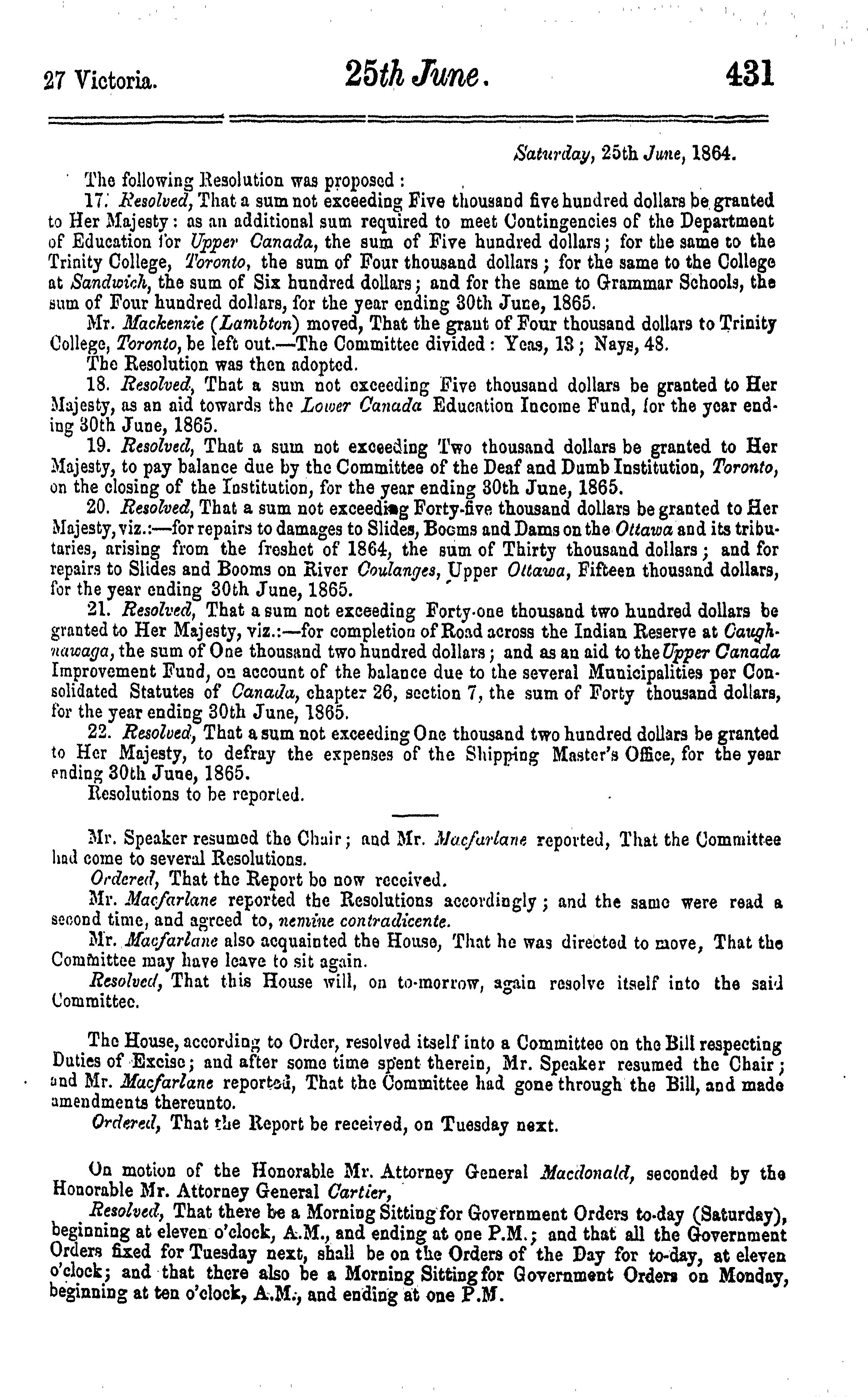 Journals of the Legislative Assembly of the Province of Canada from February 19 to June 30, 1864 ... in the twenty-seventh and twenty-eighth years of the reign of ... Queen Victoria : being the 2nd session of the 8th Provincial Parliament of Canada : 1864