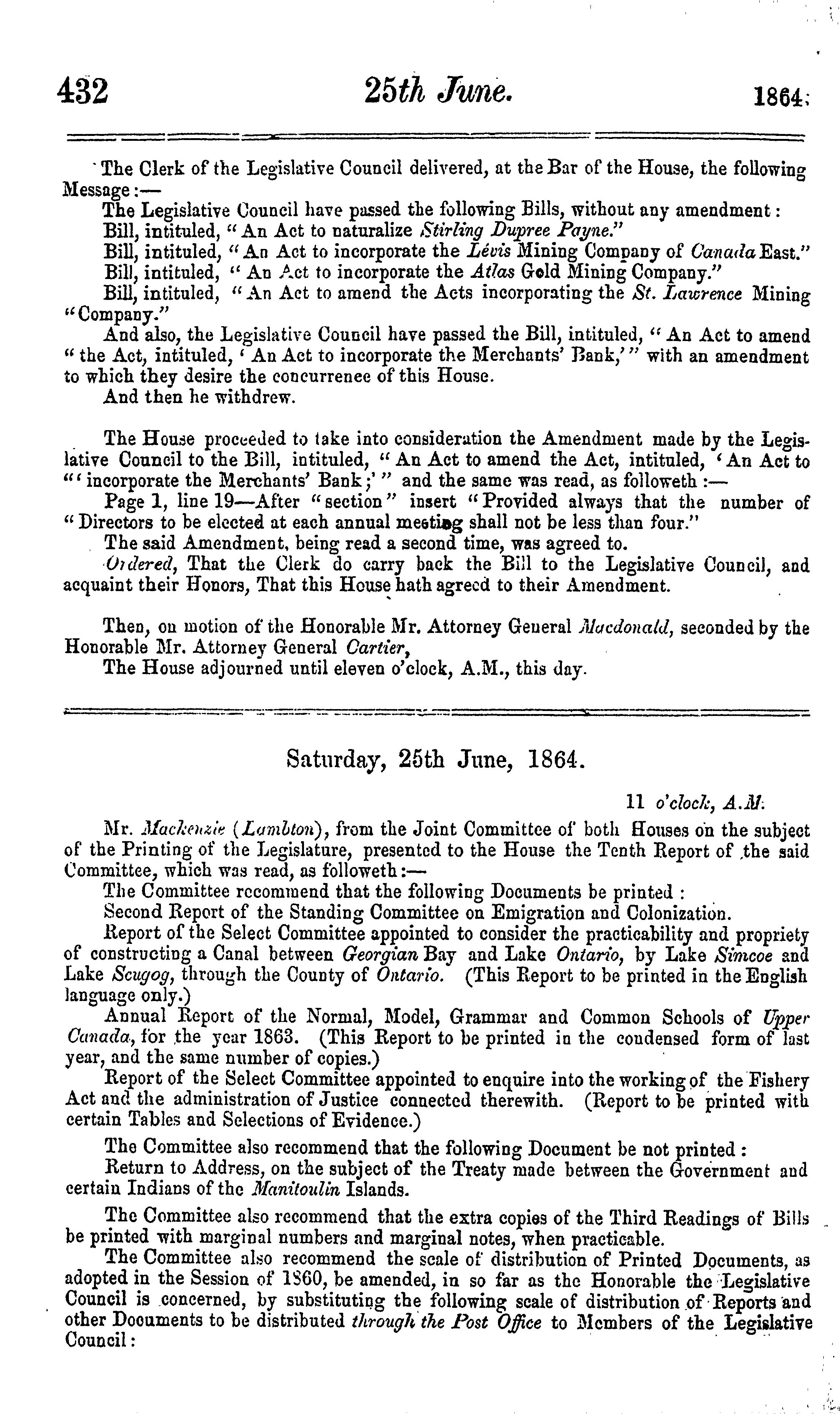 Journals of the Legislative Assembly of the Province of Canada from February 19 to June 30, 1864 ... in the twenty-seventh and twenty-eighth years of the reign of ... Queen Victoria : being the 2nd session of the 8th Provincial Parliament of Canada : 1864