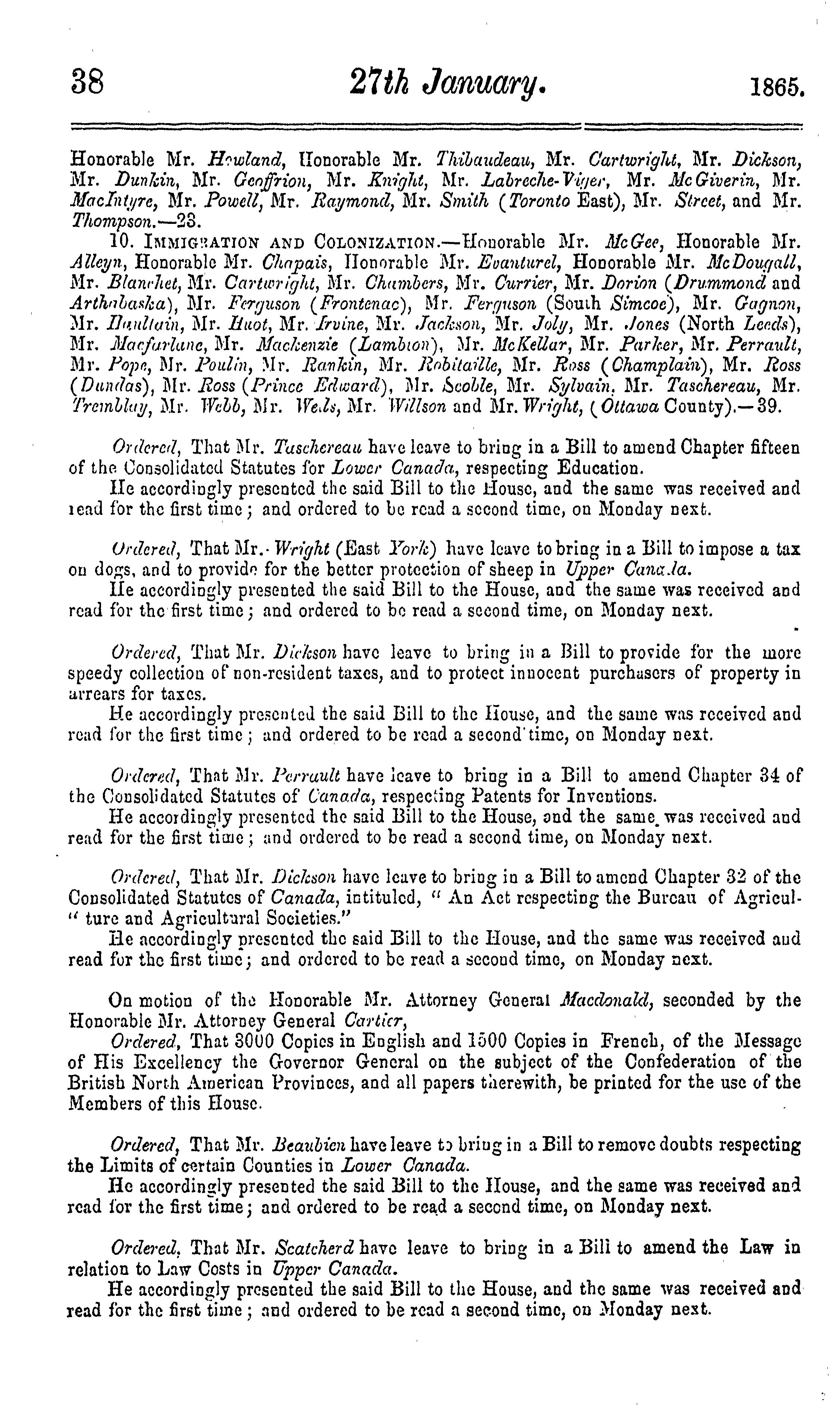 Journals of the Legislative Assembly of the Province of Canada from January 19 to March 18, 1865 ... in the twenty-eighth year of the reign of ... Queen Victoria : being the 3rd session of the 8th Provincial Parliament of Canada : 1865