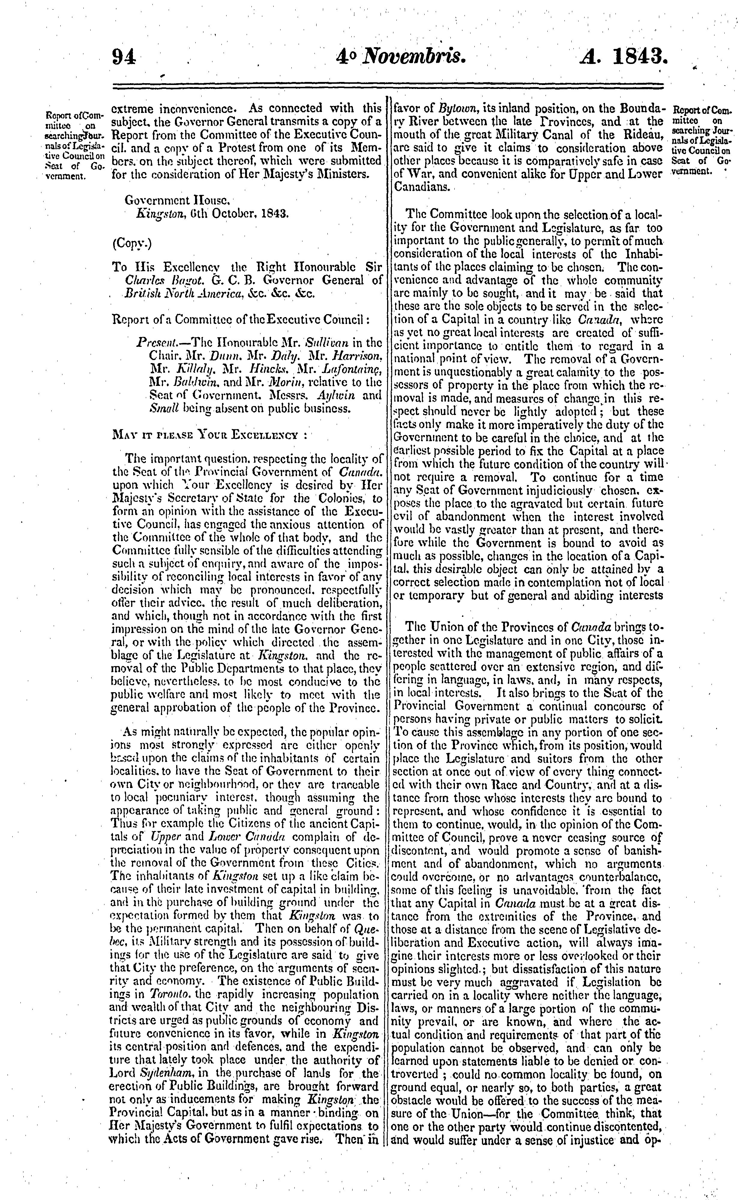 Journals of the Legislative Assembly of the Province of Canada from the 28th day of September to the 9th day of December in the year of Our Lord 1843 and in the seventh year of the reign of ... Queen Victoria : being the third session of the first Provincial Parliament of Canada : 1843