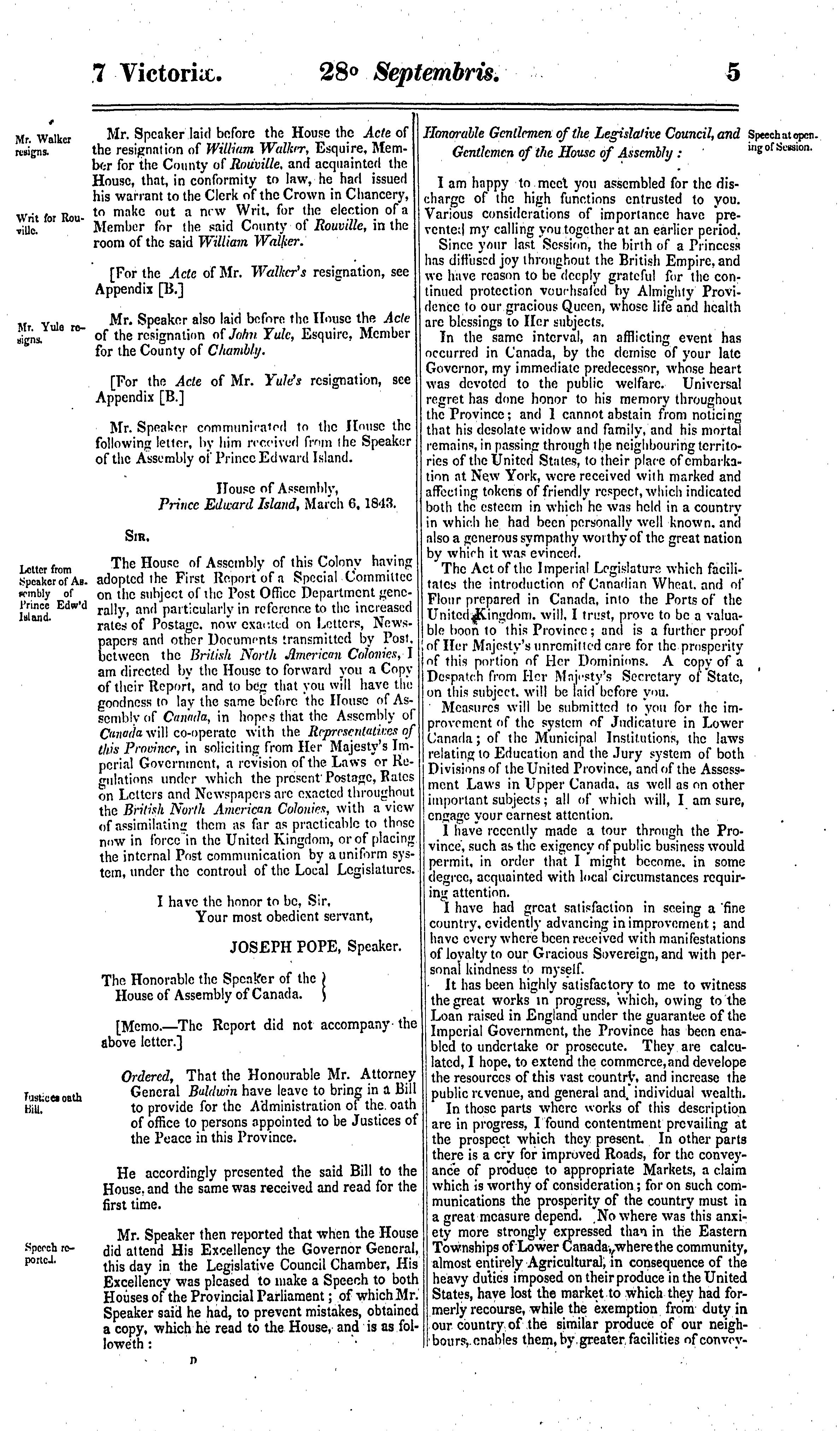 Journals of the Legislative Assembly of the Province of Canada from the 28th day of September to the 9th day of December in the year of Our Lord 1843 and in the seventh year of the reign of ... Queen Victoria : being the third session of the first Provincial Parliament of Canada : 1843