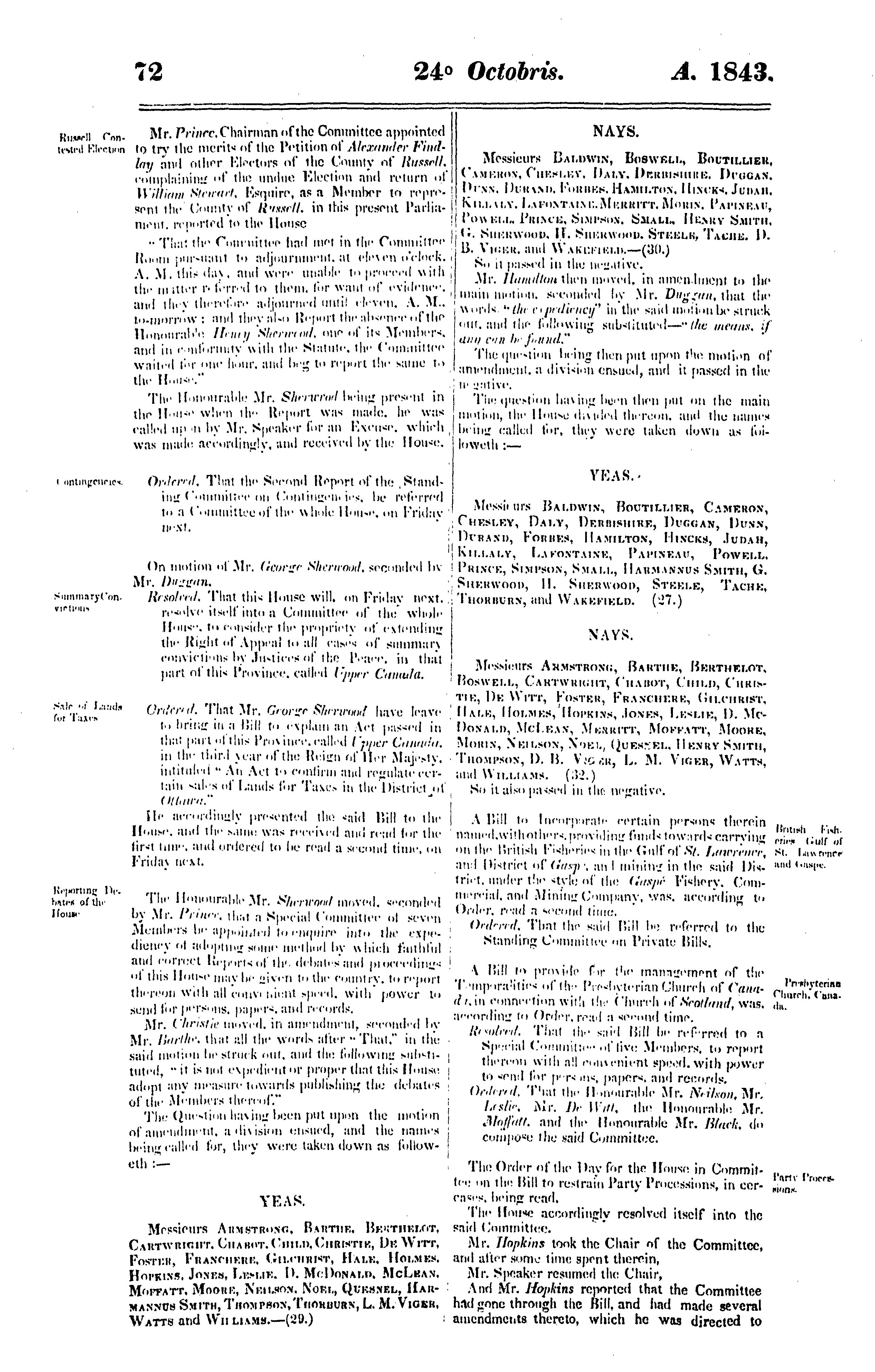 Journals of the Legislative Assembly of the Province of Canada from the 28th day of September to the 9th day of December in the year of Our Lord 1843 and in the seventh year of the reign of ... Queen Victoria : being the third session of the first Provincial Parliament of Canada : 1843