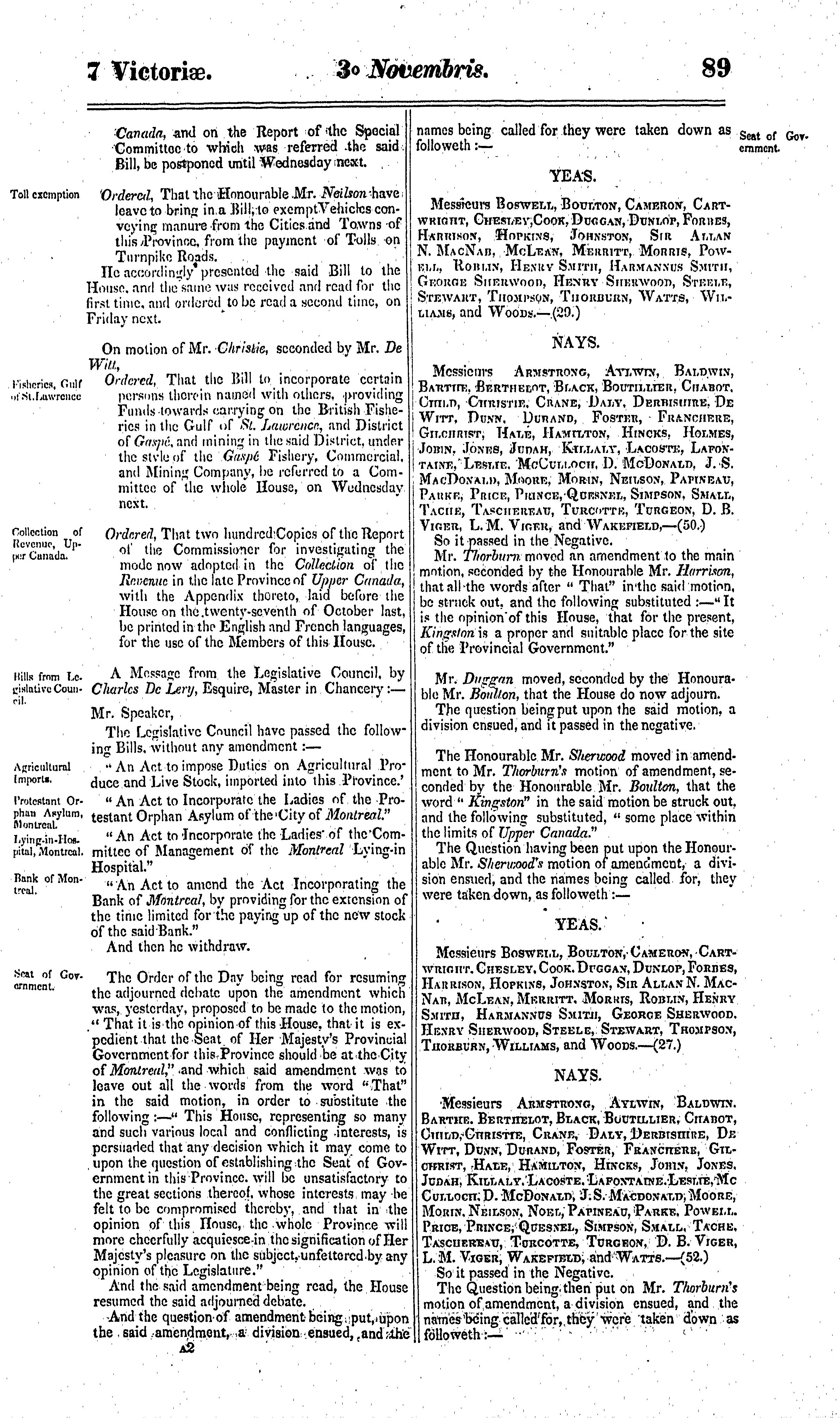 Journals of the Legislative Assembly of the Province of Canada from the 28th day of September to the 9th day of December in the year of Our Lord 1843 and in the seventh year of the reign of ... Queen Victoria : being the third session of the first Provincial Parliament of Canada : 1843