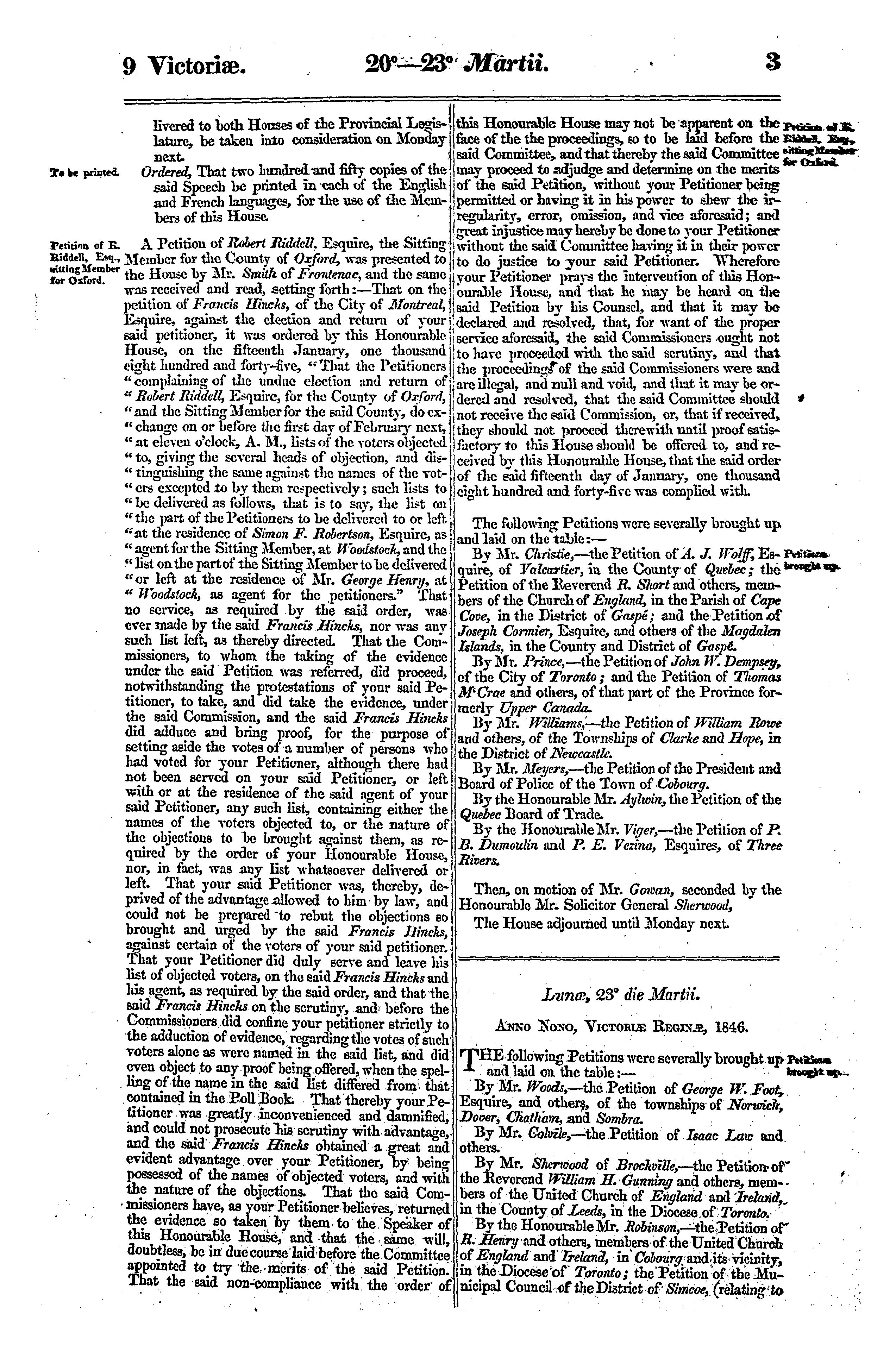 Journals of the Legislative Assembly of the Province of Canada, from the 20th day of March to the 9th day of June, 1846, both days inclusive, and in the ninth year of the reign of Our Sovereign Lady Queen Victoria, being the second session of the second provincial Parliament of Canada : 1846