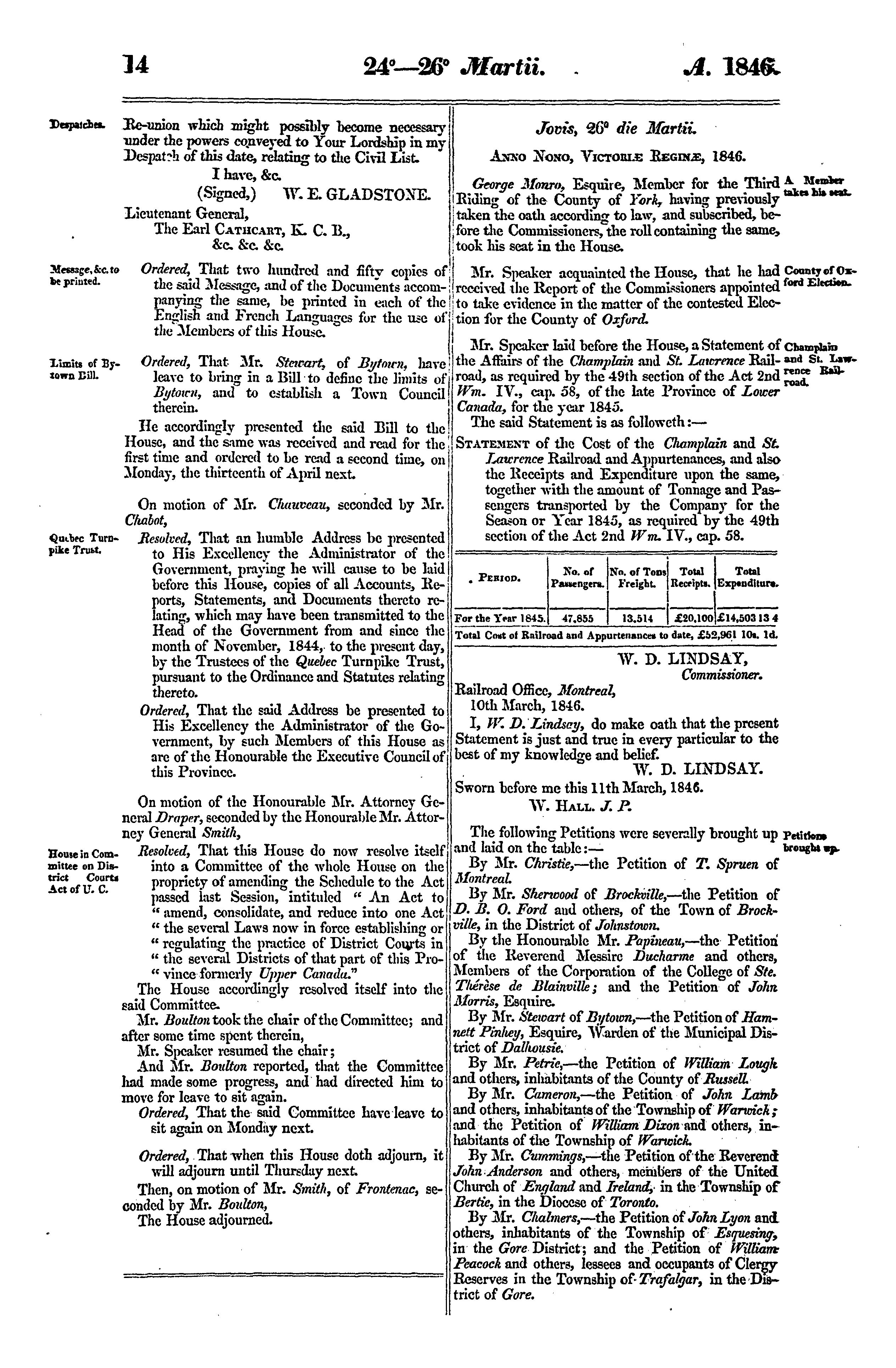Journals of the Legislative Assembly of the Province of Canada, from the 20th day of March to the 9th day of June, 1846, both days inclusive, and in the ninth year of the reign of Our Sovereign Lady Queen Victoria, being the second session of the second provincial Parliament of Canada : 1846