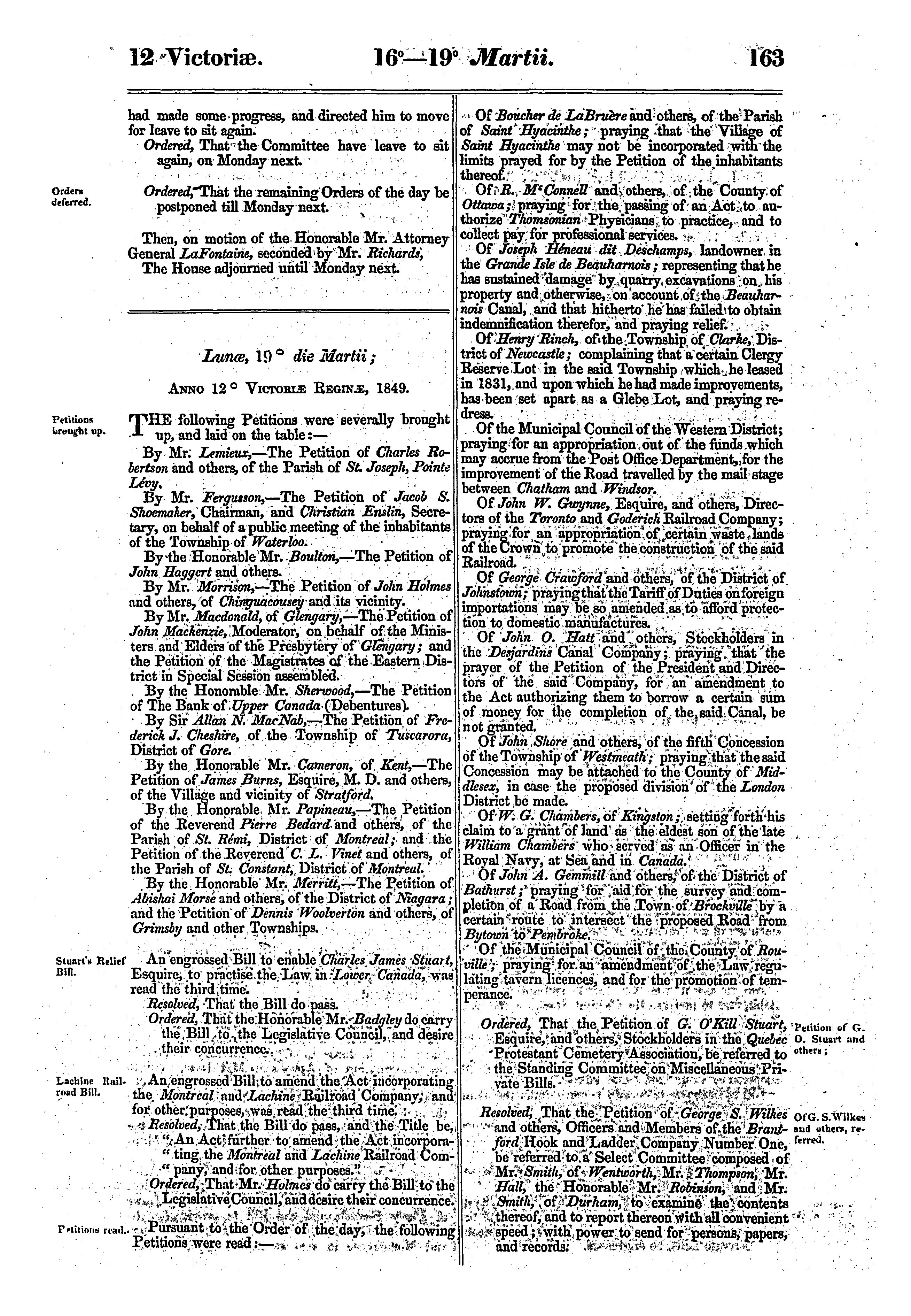 Journals of the Legislative Assembly of the Province of Canada, from the 18th day of January to the 30th day of May, both days inclusive, and in the twelfth year of the reign of Our Sovereign Lady Queen Victoria, being the second session of the third provincial Parliament of Canada : 1849