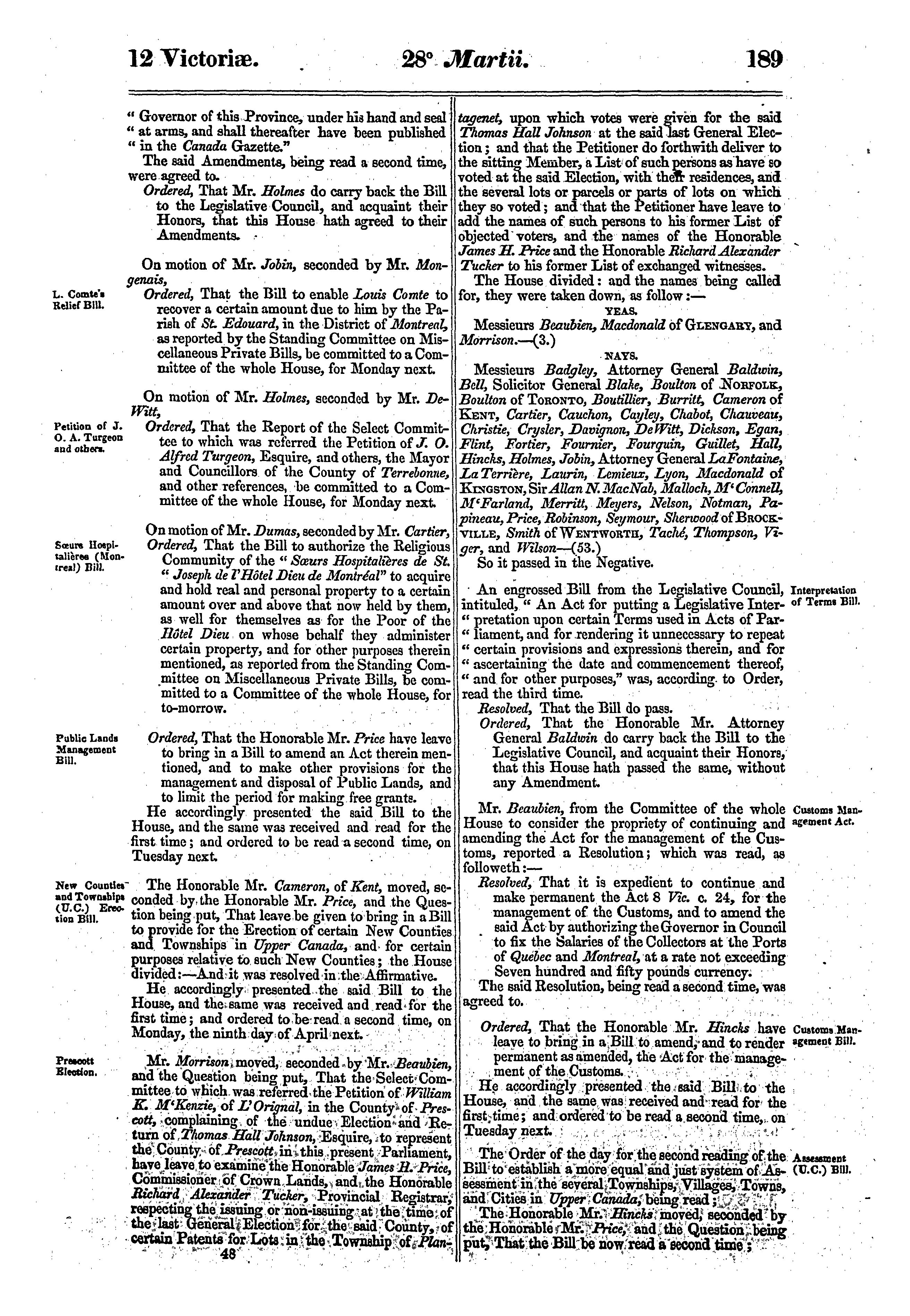 Journals of the Legislative Assembly of the Province of Canada, from the 18th day of January to the 30th day of May, both days inclusive, and in the twelfth year of the reign of Our Sovereign Lady Queen Victoria, being the second session of the third provincial Parliament of Canada : 1849