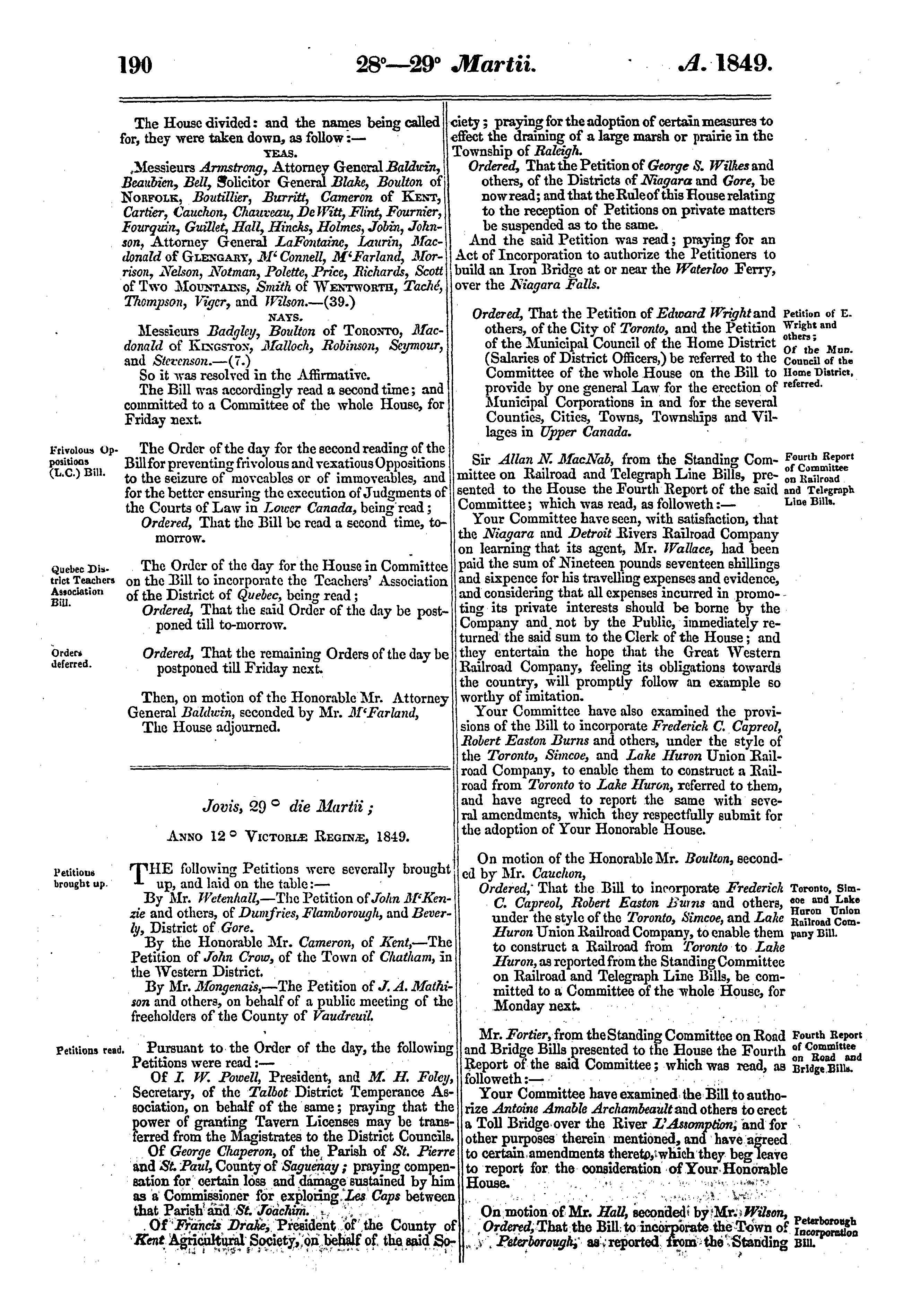 Journals of the Legislative Assembly of the Province of Canada, from the 18th day of January to the 30th day of May, both days inclusive, and in the twelfth year of the reign of Our Sovereign Lady Queen Victoria, being the second session of the third provincial Parliament of Canada : 1849