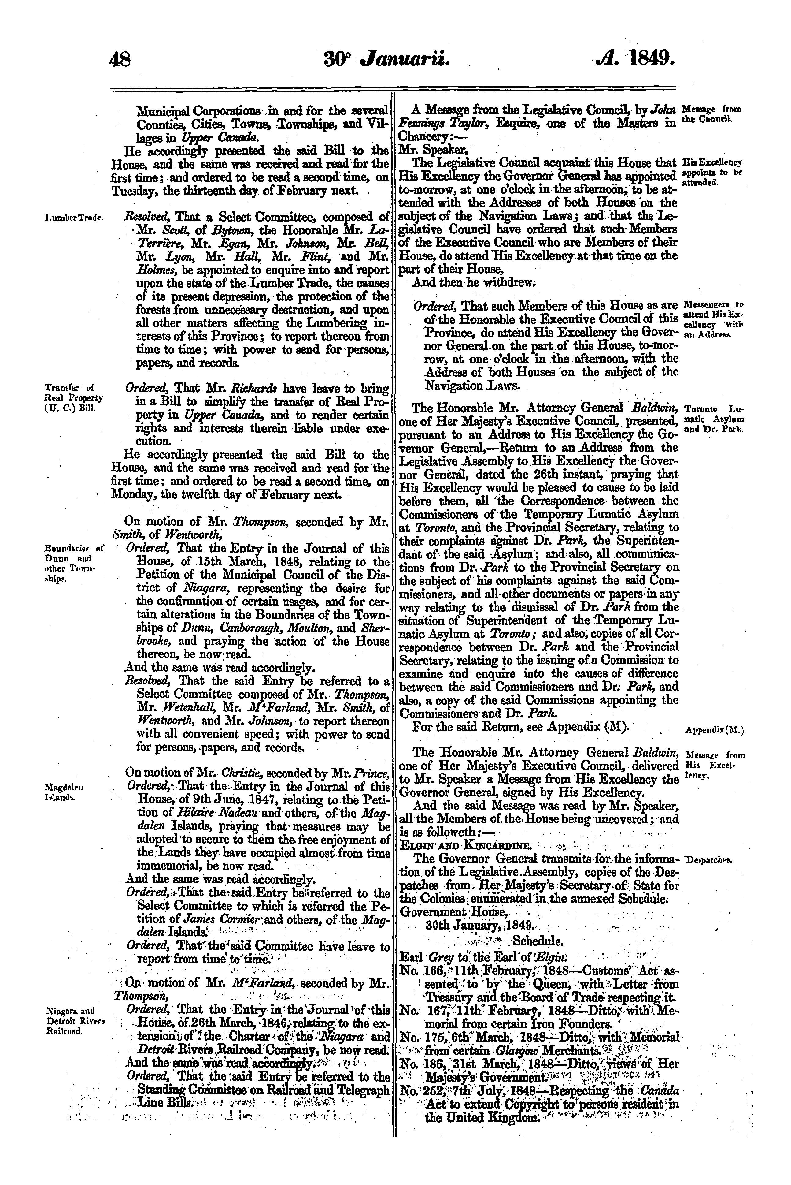 Journals of the Legislative Assembly of the Province of Canada, from the 18th day of January to the 30th day of May, both days inclusive, and in the twelfth year of the reign of Our Sovereign Lady Queen Victoria, being the second session of the third provincial Parliament of Canada : 1849