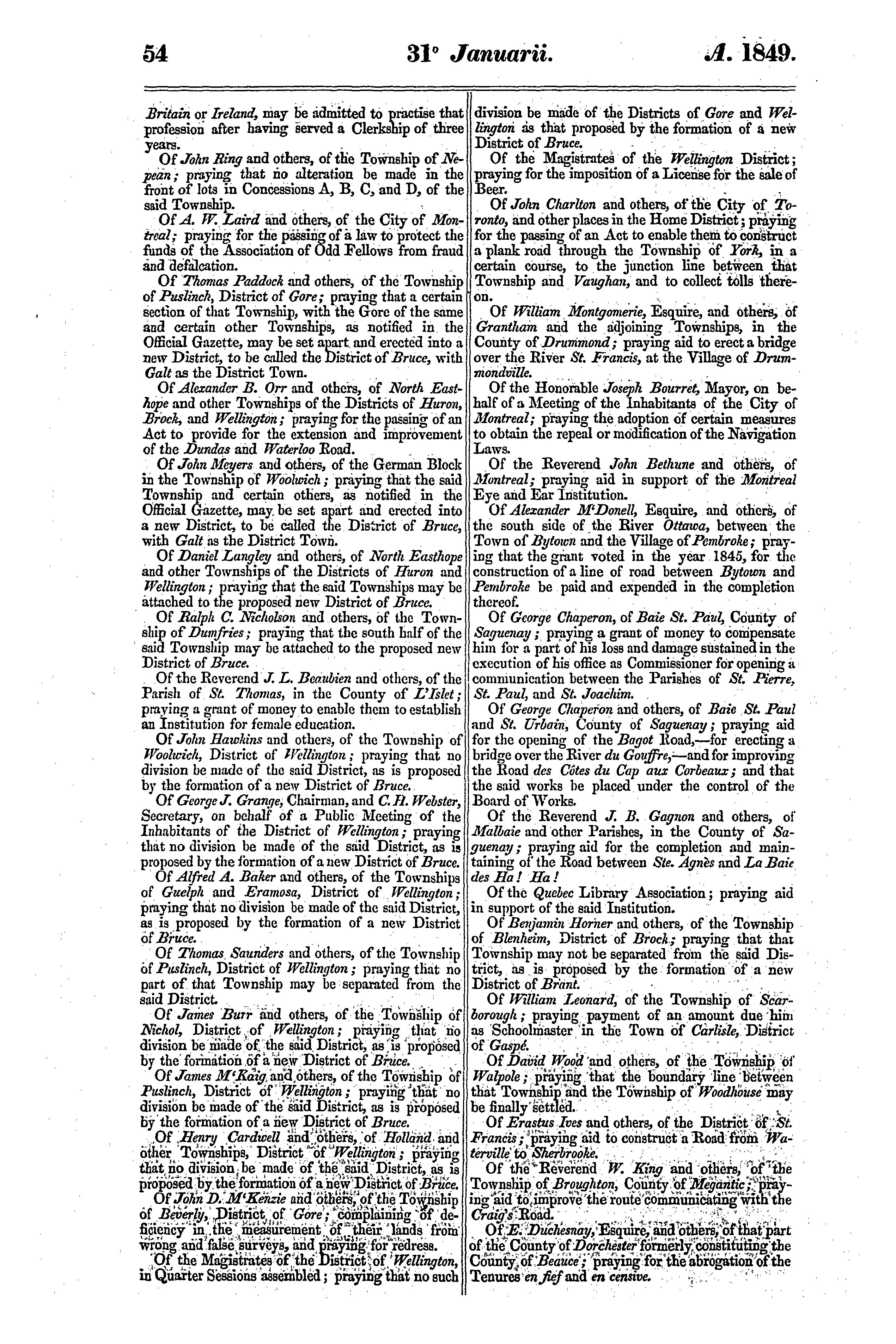 Journals of the Legislative Assembly of the Province of Canada, from the 18th day of January to the 30th day of May, both days inclusive, and in the twelfth year of the reign of Our Sovereign Lady Queen Victoria, being the second session of the third provincial Parliament of Canada : 1849