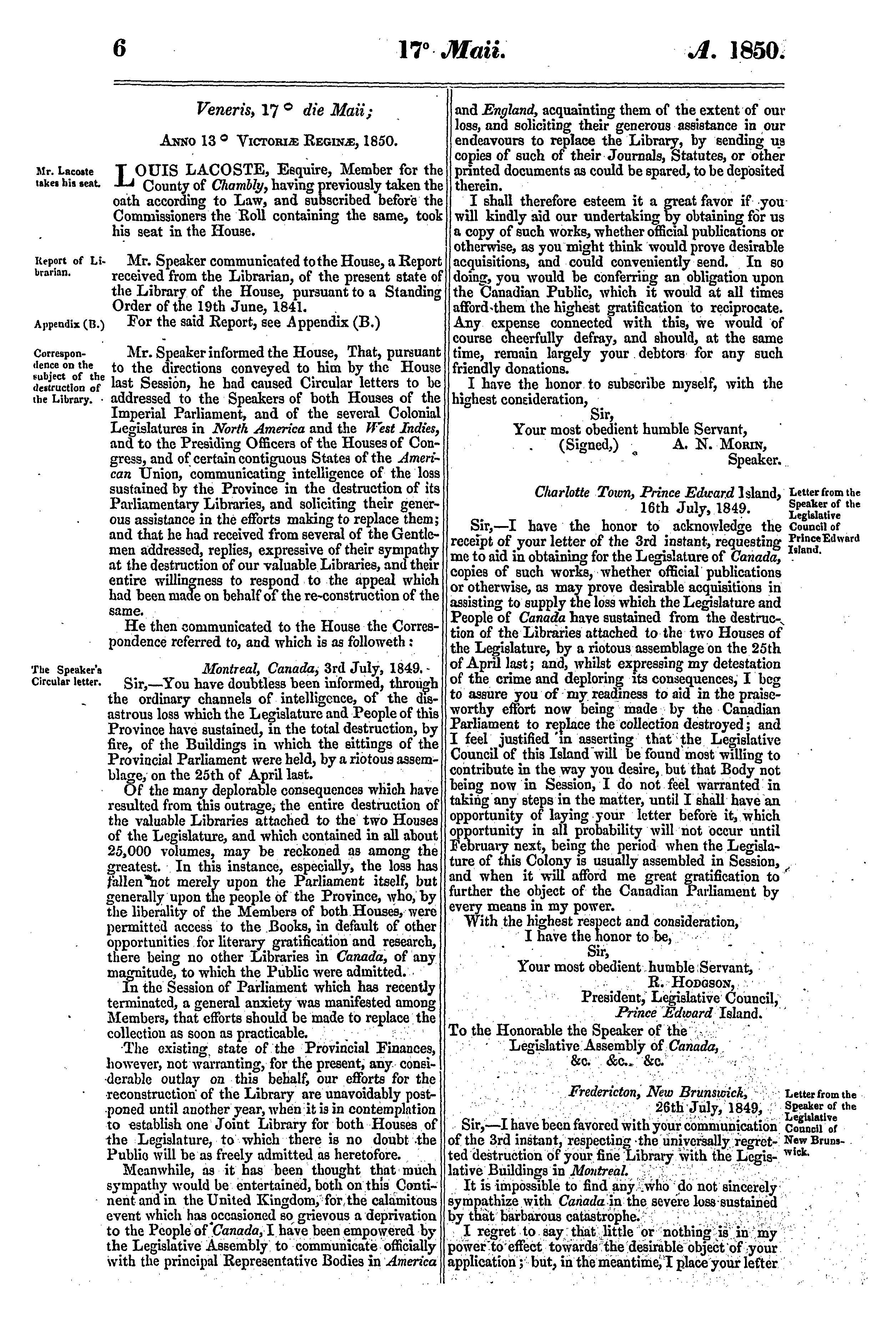 Journals of the Legislative Assembly of the Province of Canada ... :