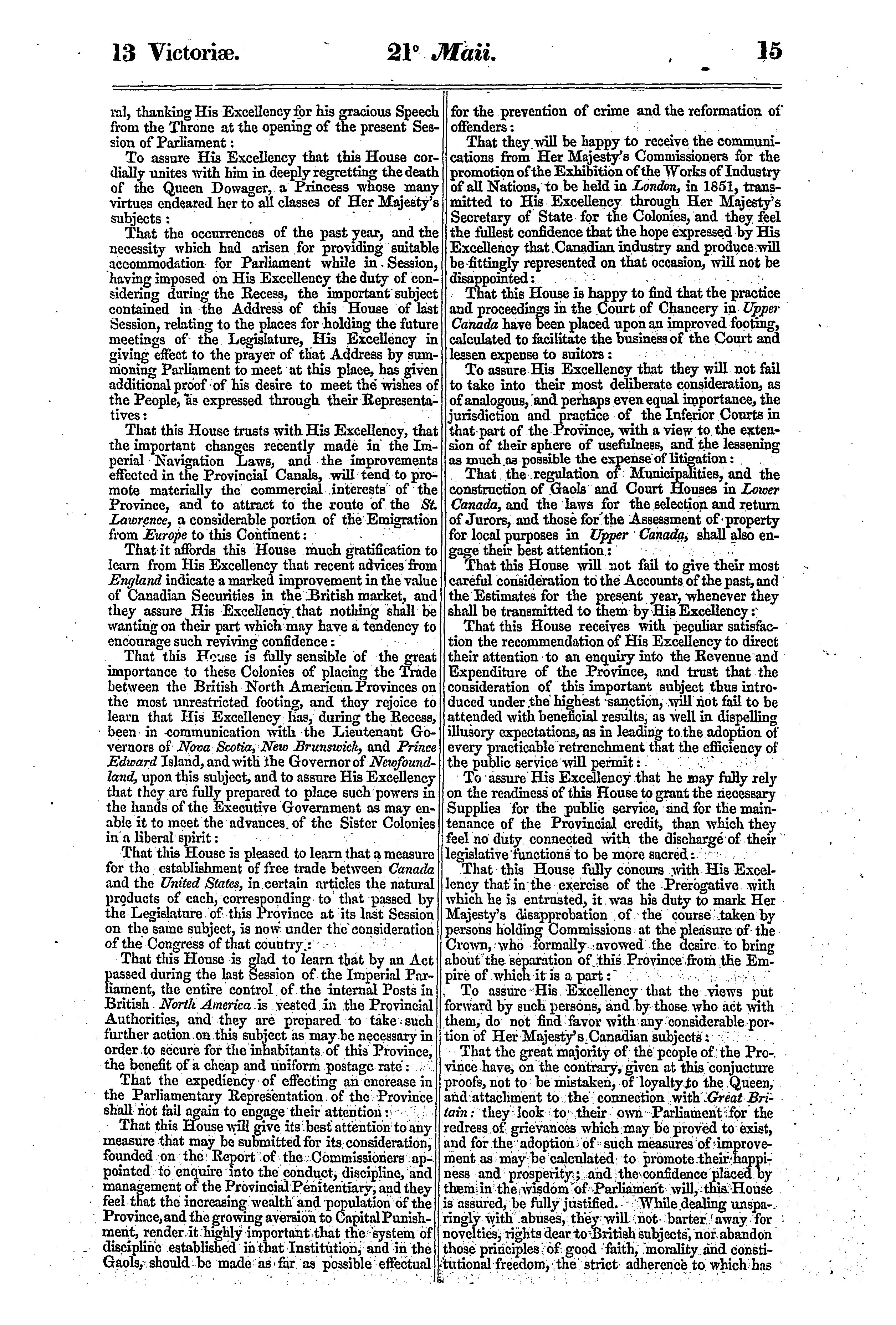 Journals of the Legislative Assembly of the Province of Canada from the 14th day of May to the 10th day of August, both days inclusive, and in the thirteenth and fourteenth years of the reign of Our Sovereign Lady Queen Victoria, being the third Session of the third provincial Parliament of Canada, Session 1850 : 1850