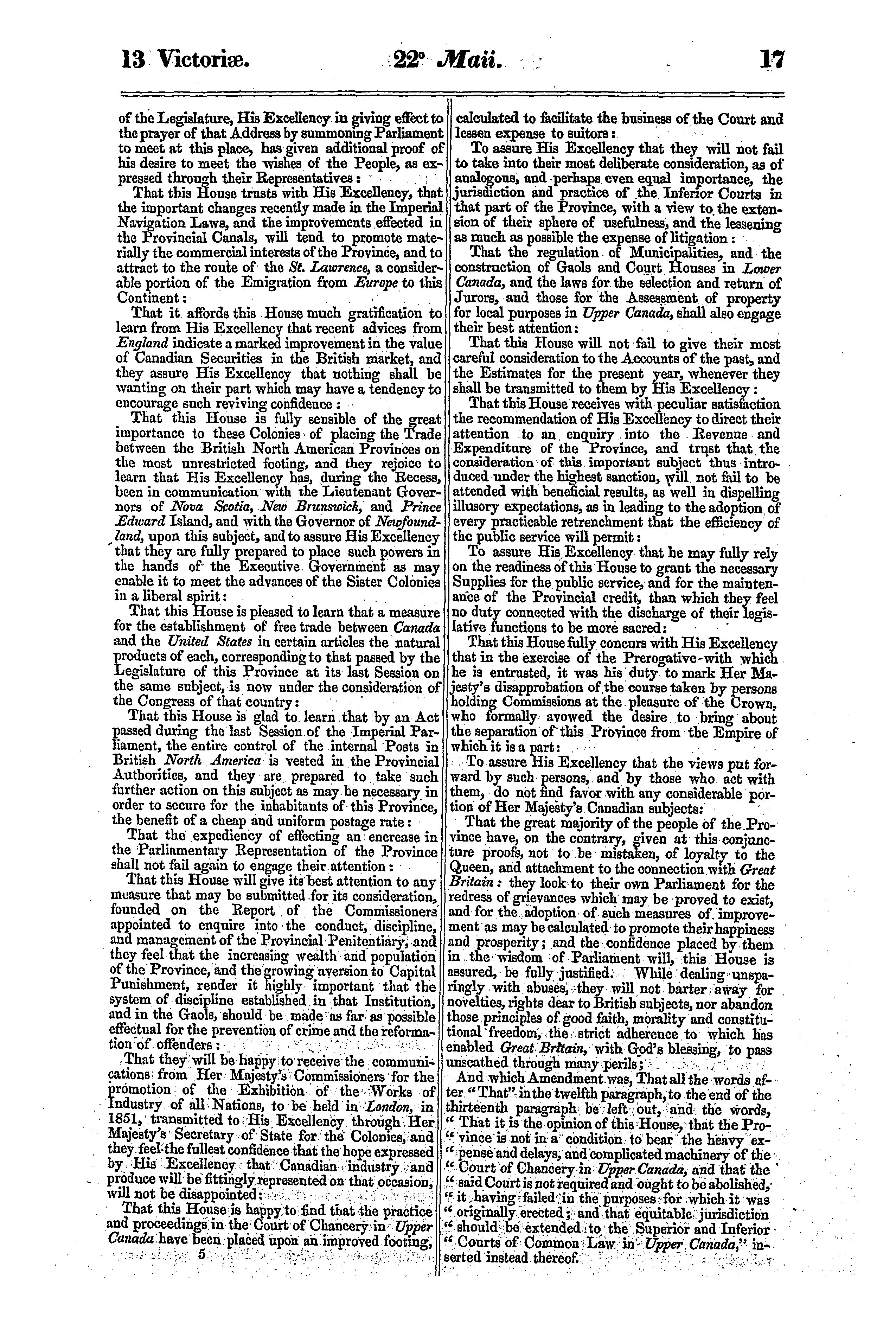 Journals of the Legislative Assembly of the Province of Canada from the 14th day of May to the 10th day of August, both days inclusive, and in the thirteenth and fourteenth years of the reign of Our Sovereign Lady Queen Victoria, being the third Session of the third provincial Parliament of Canada, Session 1850 : 1850