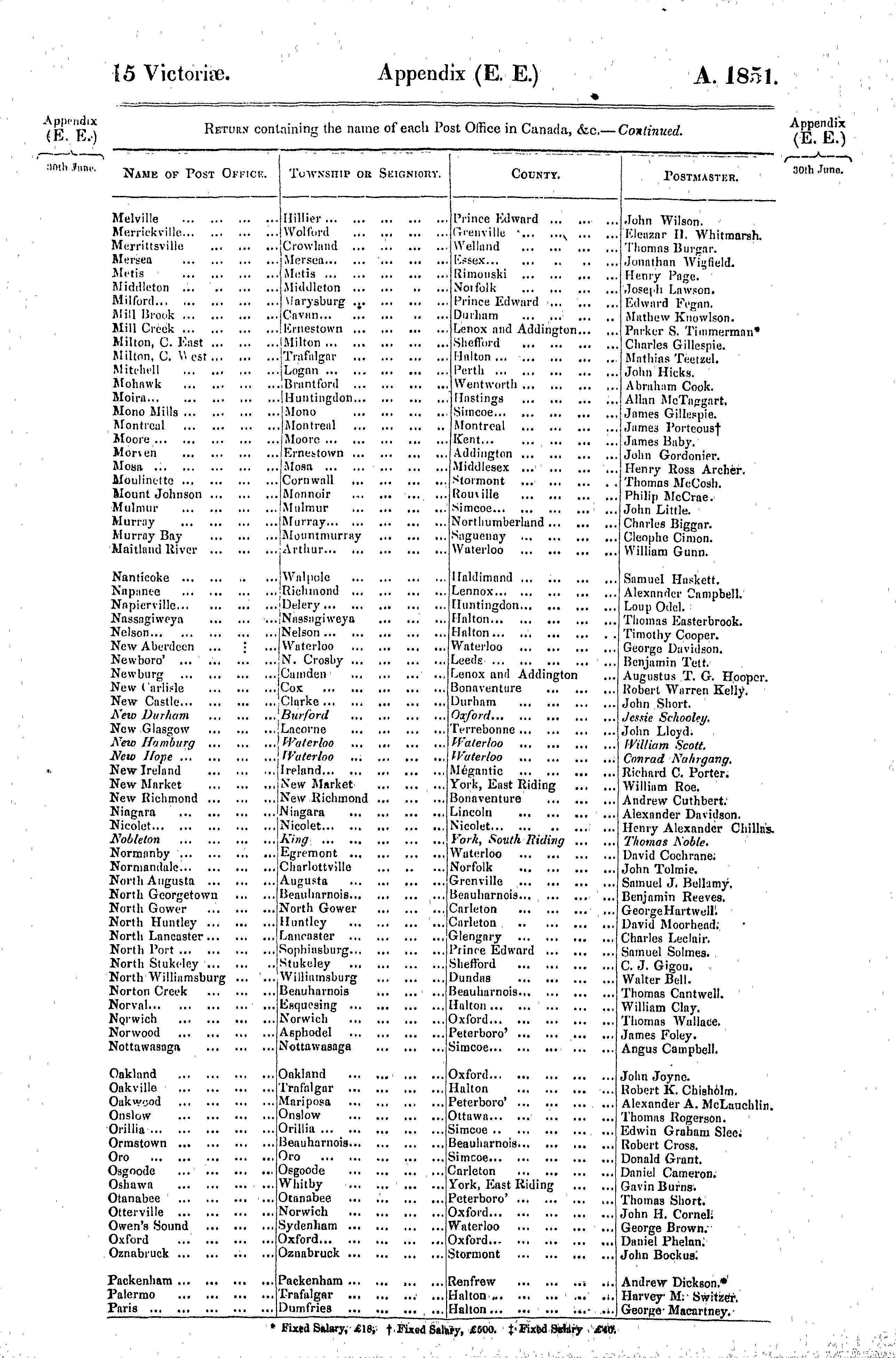 Appendix to the tenth volume of the journals of the Legislative Assembly of the Province of Canada ... 20th day of May to the 30th day of August ... fourteenth & fifteenth years of the reign of ... Queen Victoria : being the 4th session of the 3rd Provincial Parliament of Canada : 1851 (no. 2)