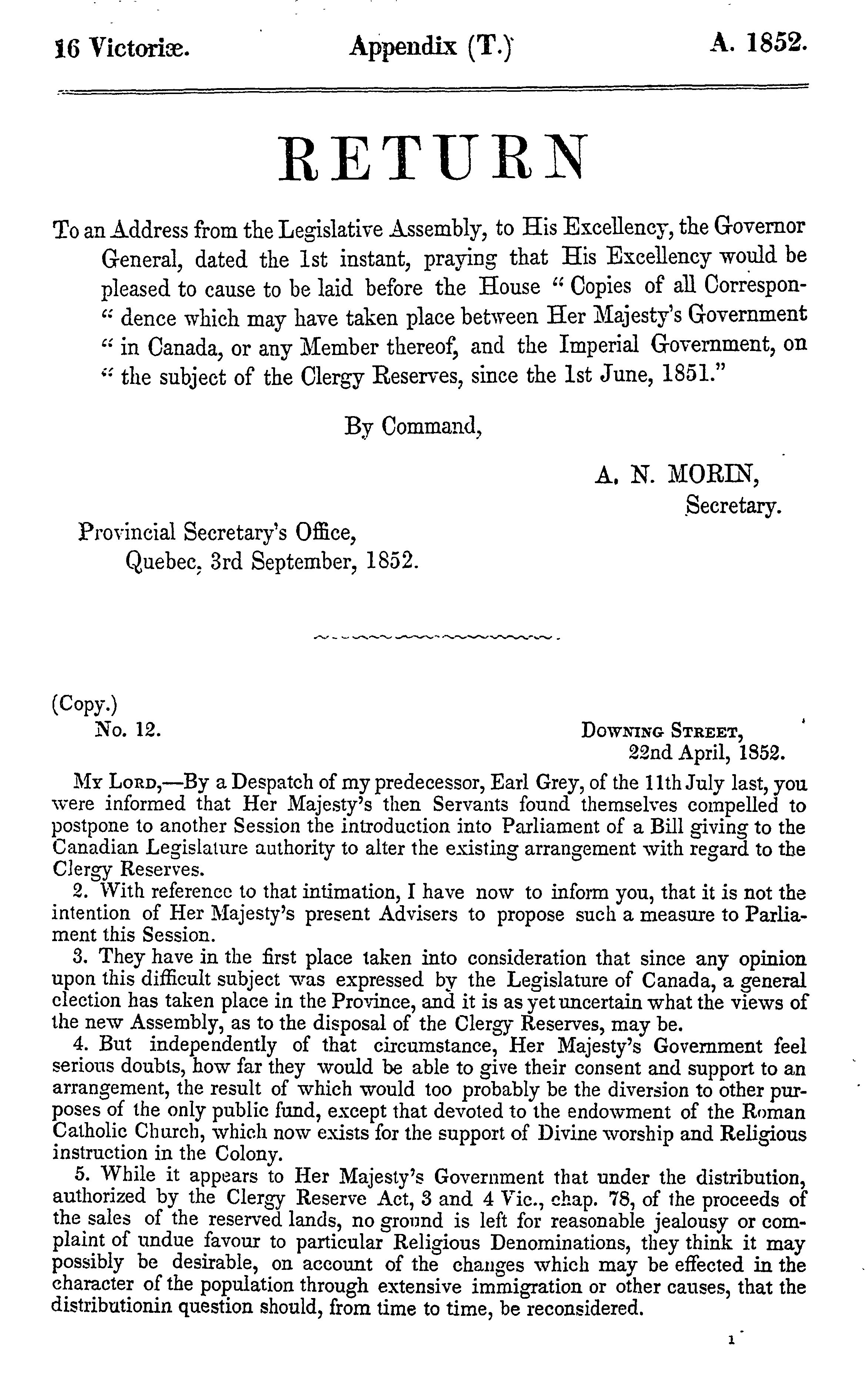 Appendix to ... of the Journals of the Legislative Assembly of the Province of Canada : Appendix to the eleventh volume of the journals of the Legislative Assembly of the Province of Canada ... 19th August 1852, to the 14th June, 1853 ... sixteenth year of the reign of ... Queen Victoria : being the 1st session of the 4th Provincial Parliament of Canada : 1852/53 (no. 3)