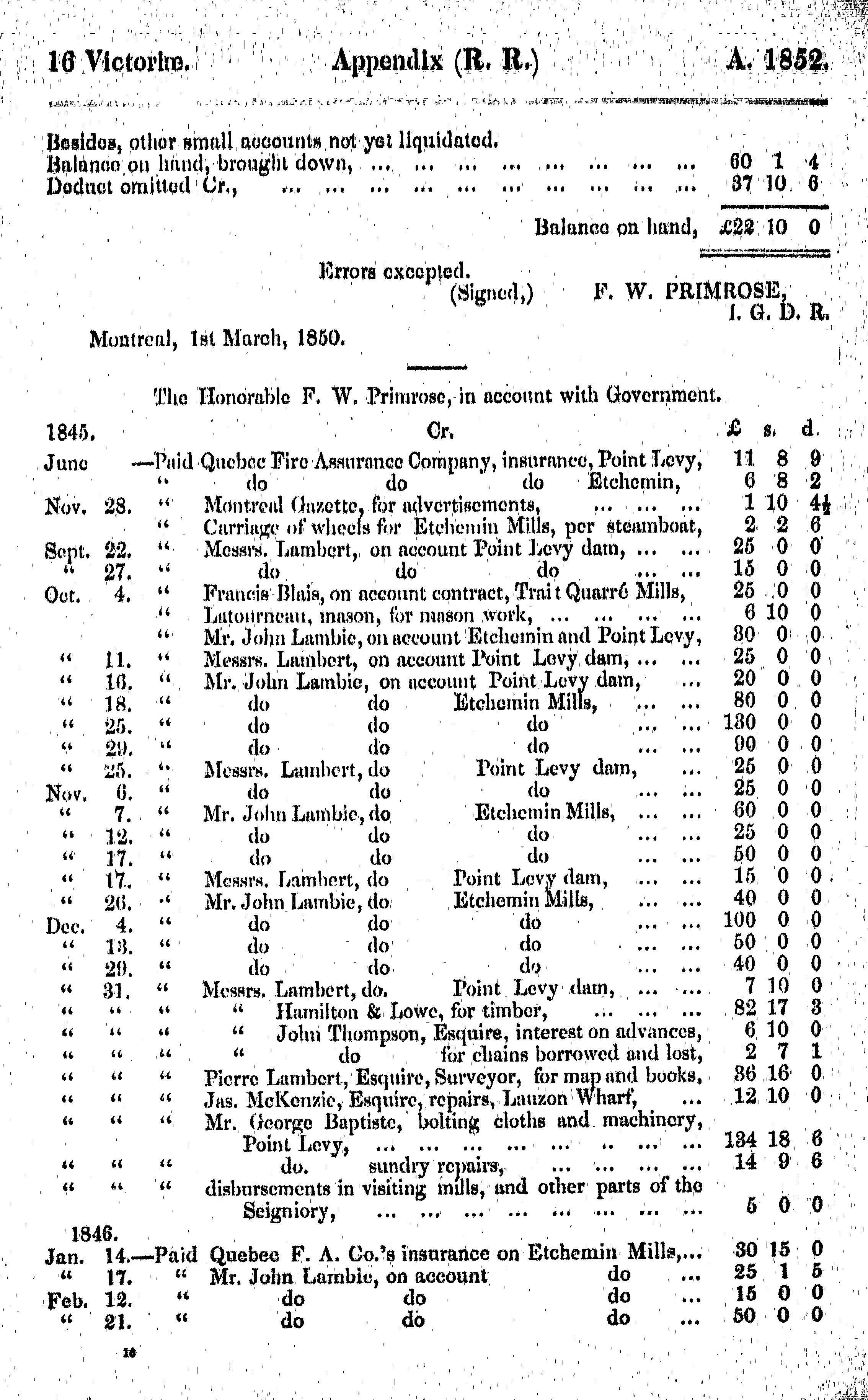 Appendix to the eleventh volume of the journals of the Legislative Assembly of the Province of Canada ... 19th August, 1852, to the 14th June, 1853 ... sixteenth year of the reign of ... Queen Victoria : being the 1st session of the 4th Provincial Parliament of Canada : 1852/53 (no. 5)