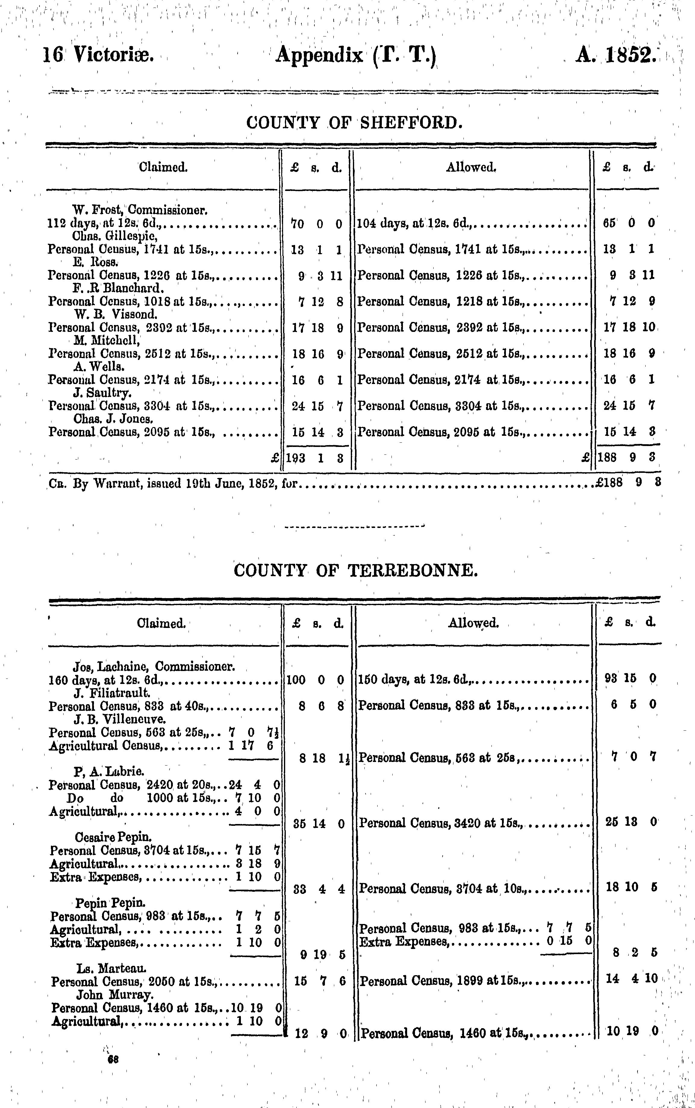Appendix to the eleventh volume of the journals of the Legislative Assembly of the Province of Canada ... 19th August, 1852, to the 14th June, 1853 ... sixteenth year of the reign of ... Queen Victoria : being the 1st session of the 4th Provincial Parliament of Canada : 1852/53 (no. 5)