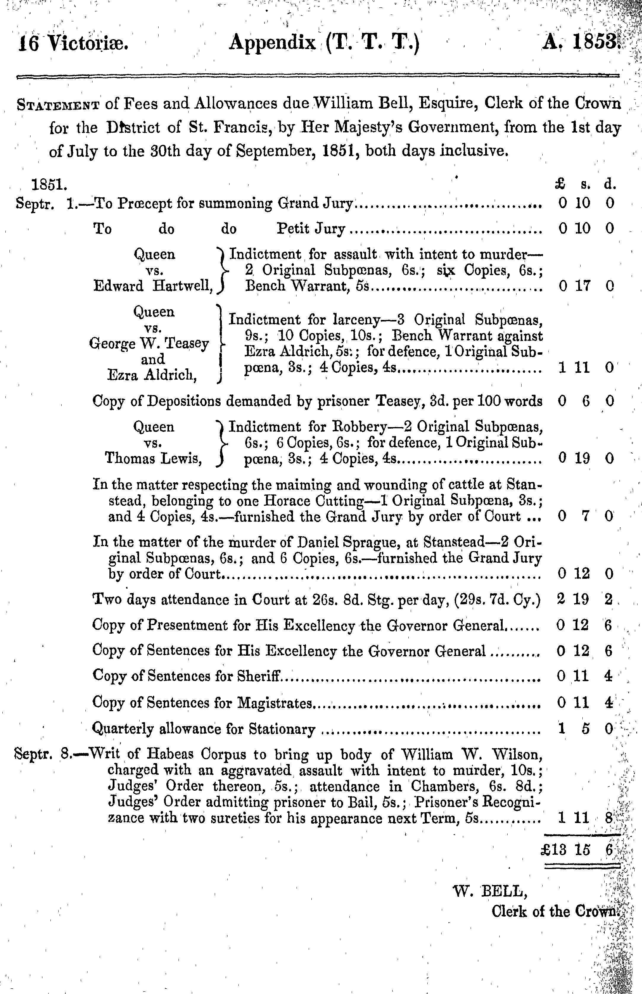 Appendix to the eleventh volume of the journals of the Legislative Assembly of the Province of Canada ... 19th August, 1852, to the 14th June, 1853 ... sixteenth year of the reign of ... Queen Victoria : being the 1st session of the 4th Provincial Parliament of Canada : 1852/53 (no. 7)