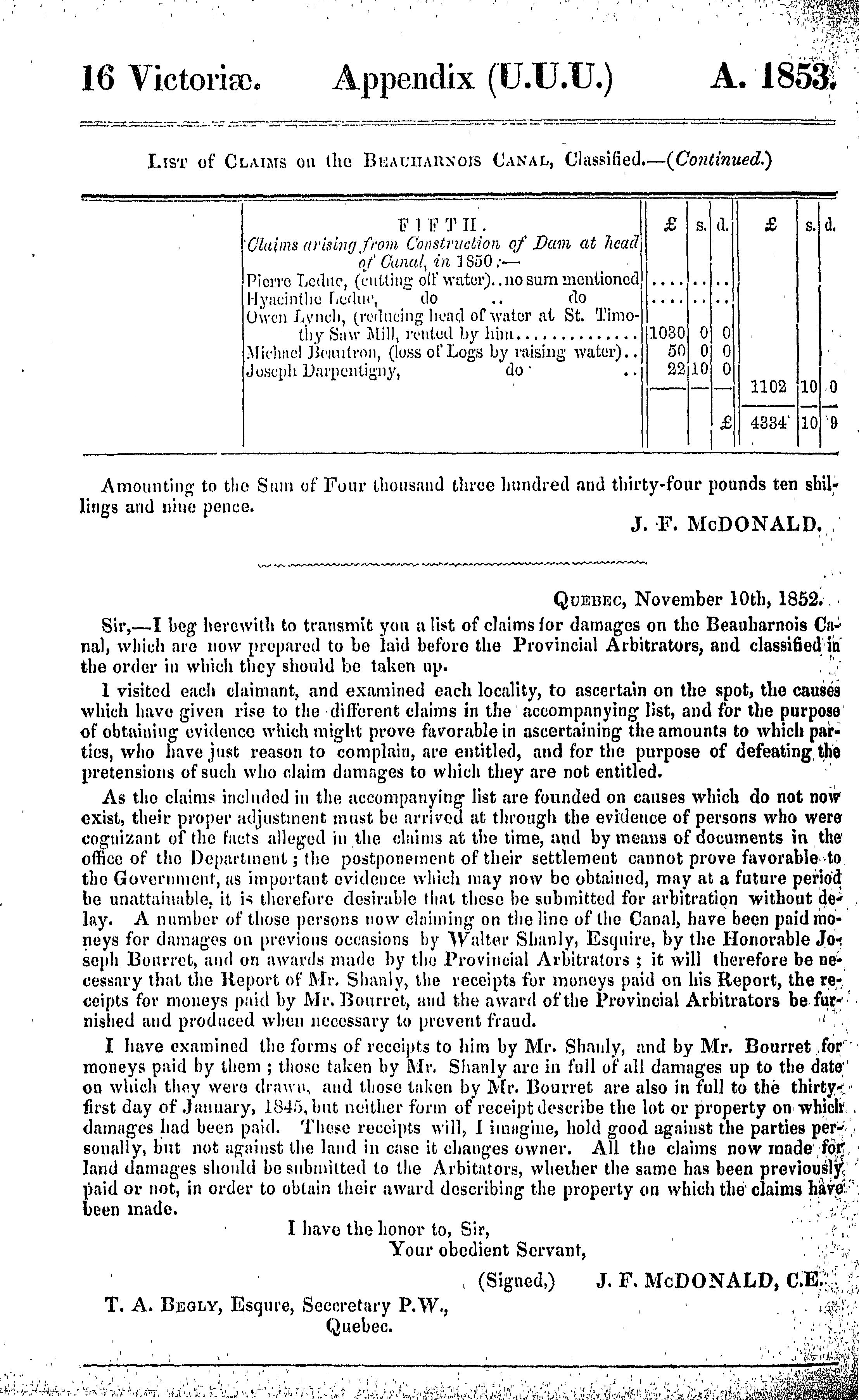Appendix to the eleventh volume of the journals of the Legislative Assembly of the Province of Canada ... 19th August, 1852, to the 14th June, 1853 ... sixteenth year of the reign of ... Queen Victoria : being the 1st session of the 4th Provincial Parliament of Canada : 1852/53 (no. 8)