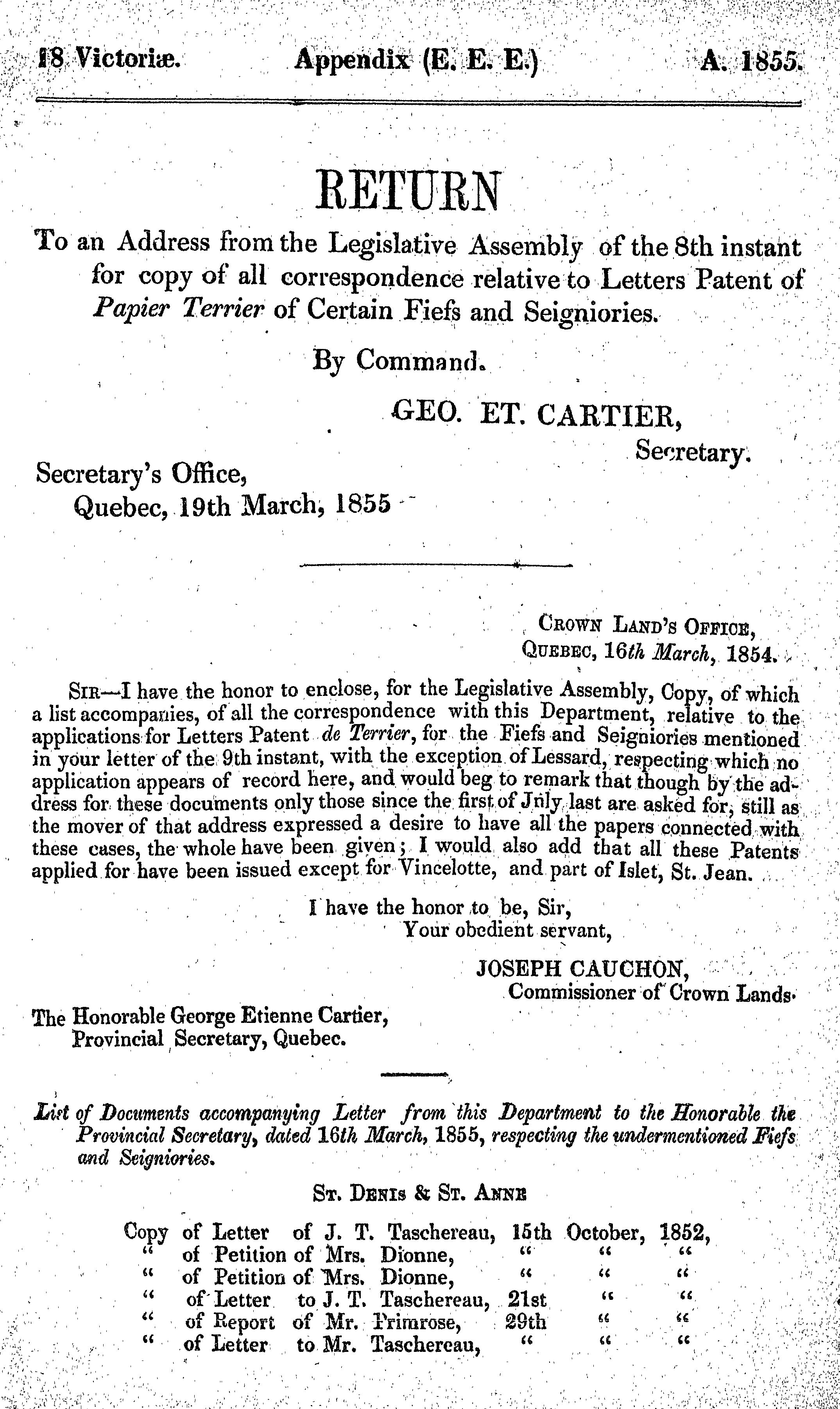 Appendix to the thirteenth volume of the journals of the Legislative Assembly of the Province of Canada ... 5th September, 1854, to 30th May, 1855 ... eighteenth year of the reign of ... Queen Victoria : being the 1st session of the 5th Provincial Parliament of Canada : 1854/55 (no. 13)