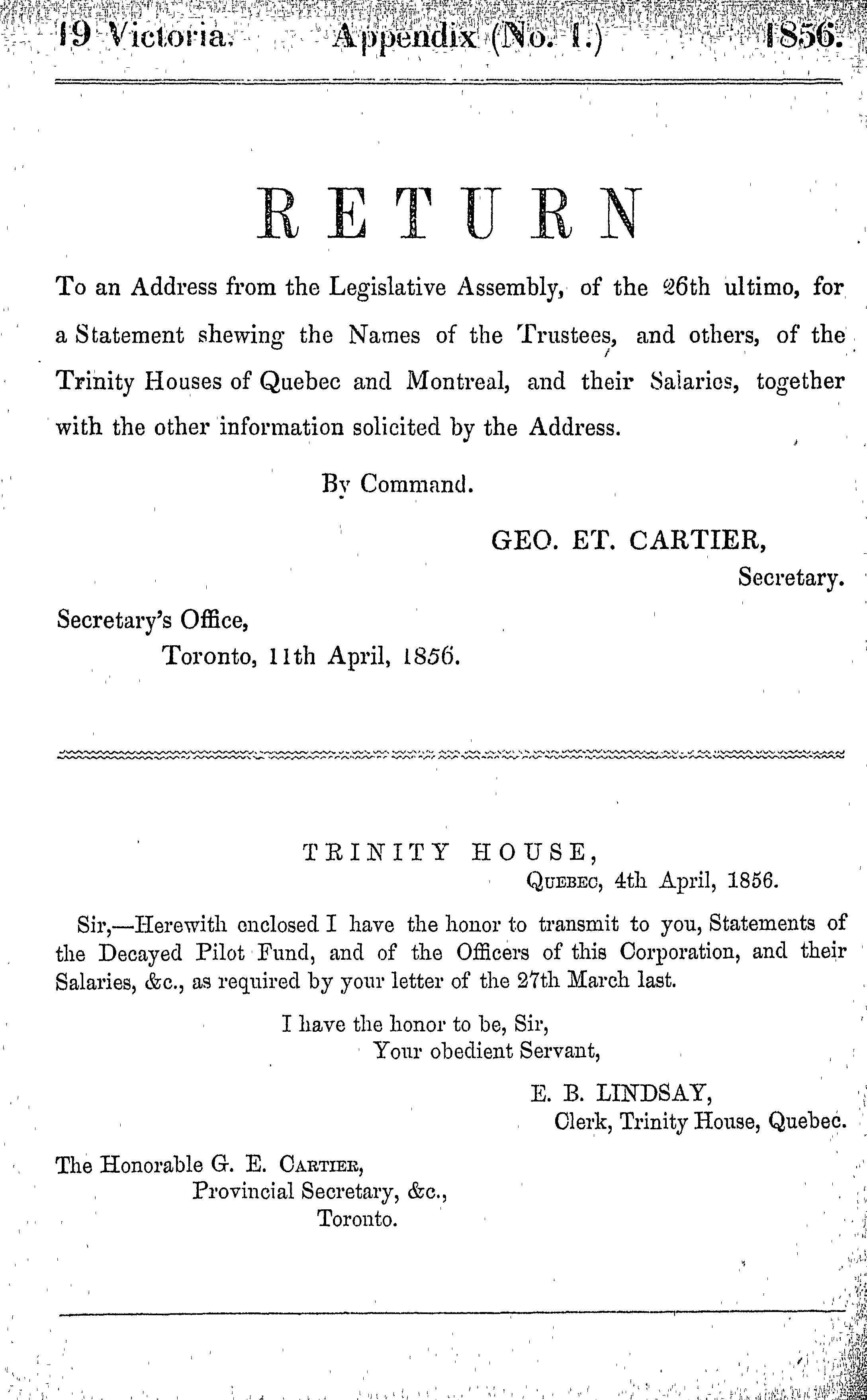 Appendix to the fourteenth volume of the journals of the Legislative Assembly of the Province of Canada ... 15th February to the 1st July, 1856 ... nineteenth and twentieth years of the reign of ... Queen Victoria : being the 2nd session of the 5th Provincial Parliament of Canada : 1856 (no. 1)