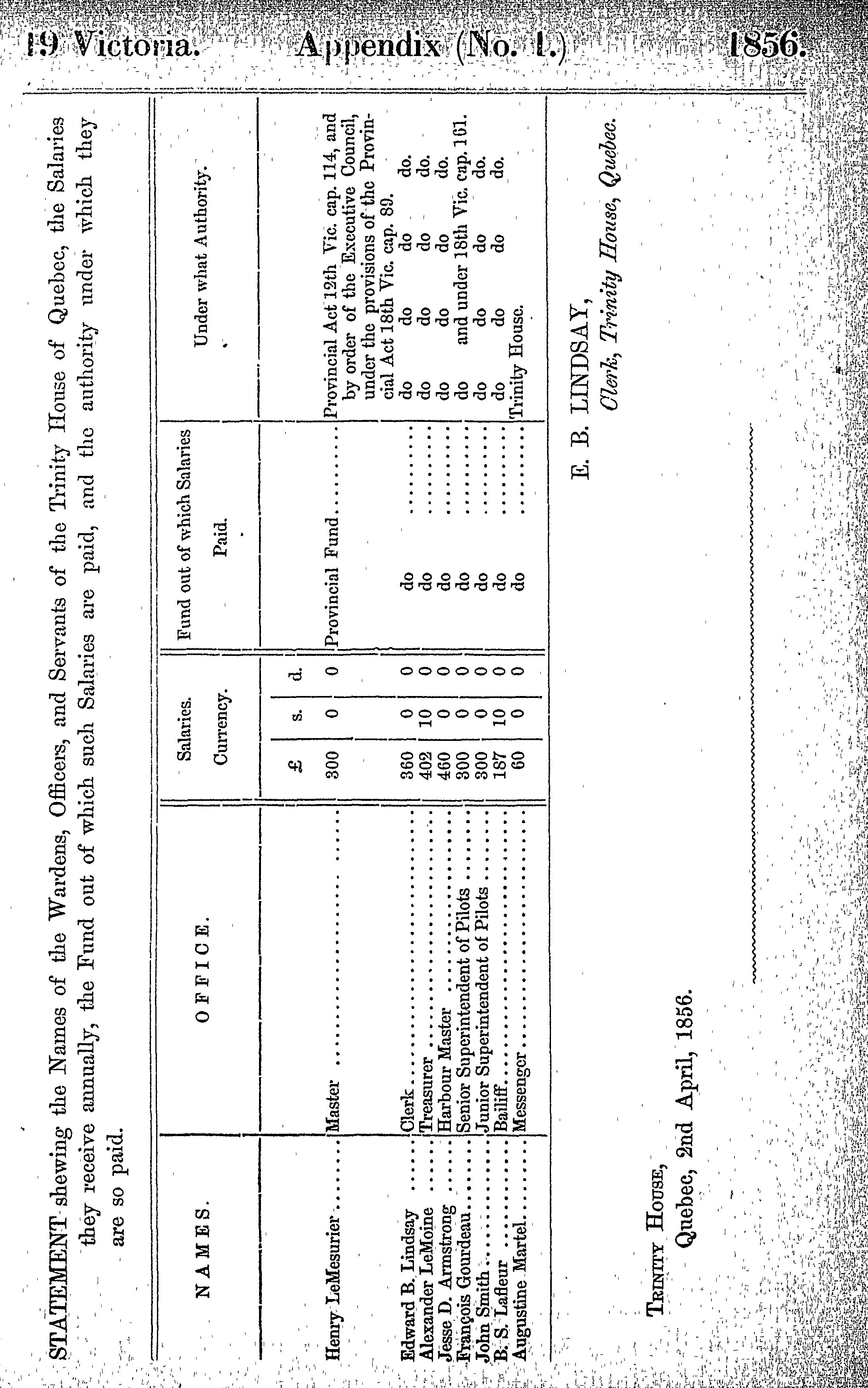 Appendix to the fourteenth volume of the journals of the Legislative Assembly of the Province of Canada ... 15th February to the 1st July, 1856 ... nineteenth and twentieth years of the reign of ... Queen Victoria : being the 2nd session of the 5th Provincial Parliament of Canada : 1856 (no. 1)