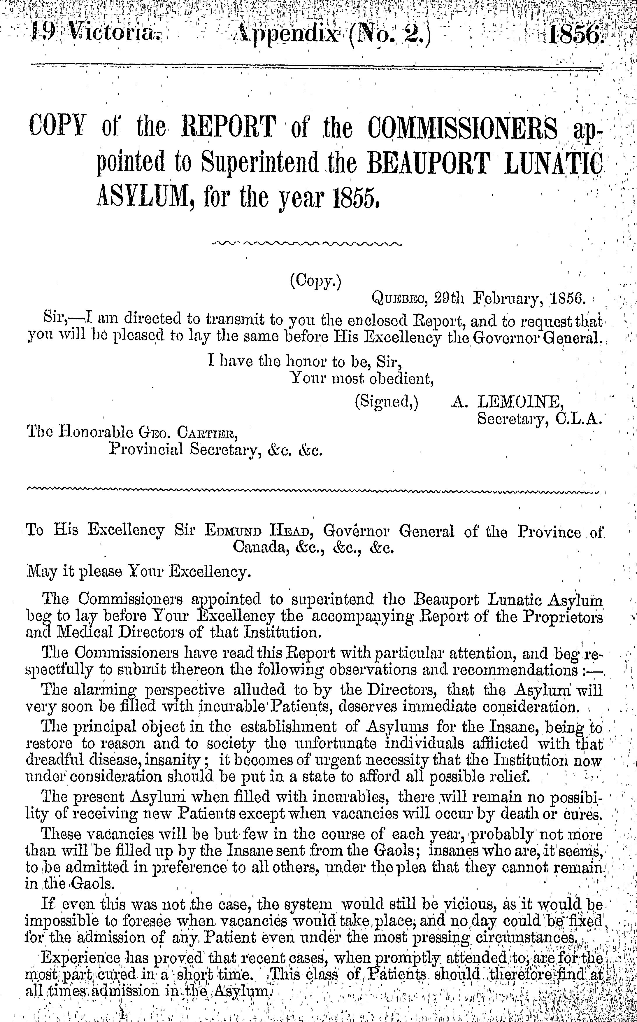 Appendix to the fourteenth volume of the journals of the Legislative Assembly of the Province of Canada ... 15th February to the 1st July, 1856 ... nineteenth and twentieth years of the reign of ... Queen Victoria : being the 2nd session of the 5th Provincial Parliament of Canada : 1856 (no. 1)