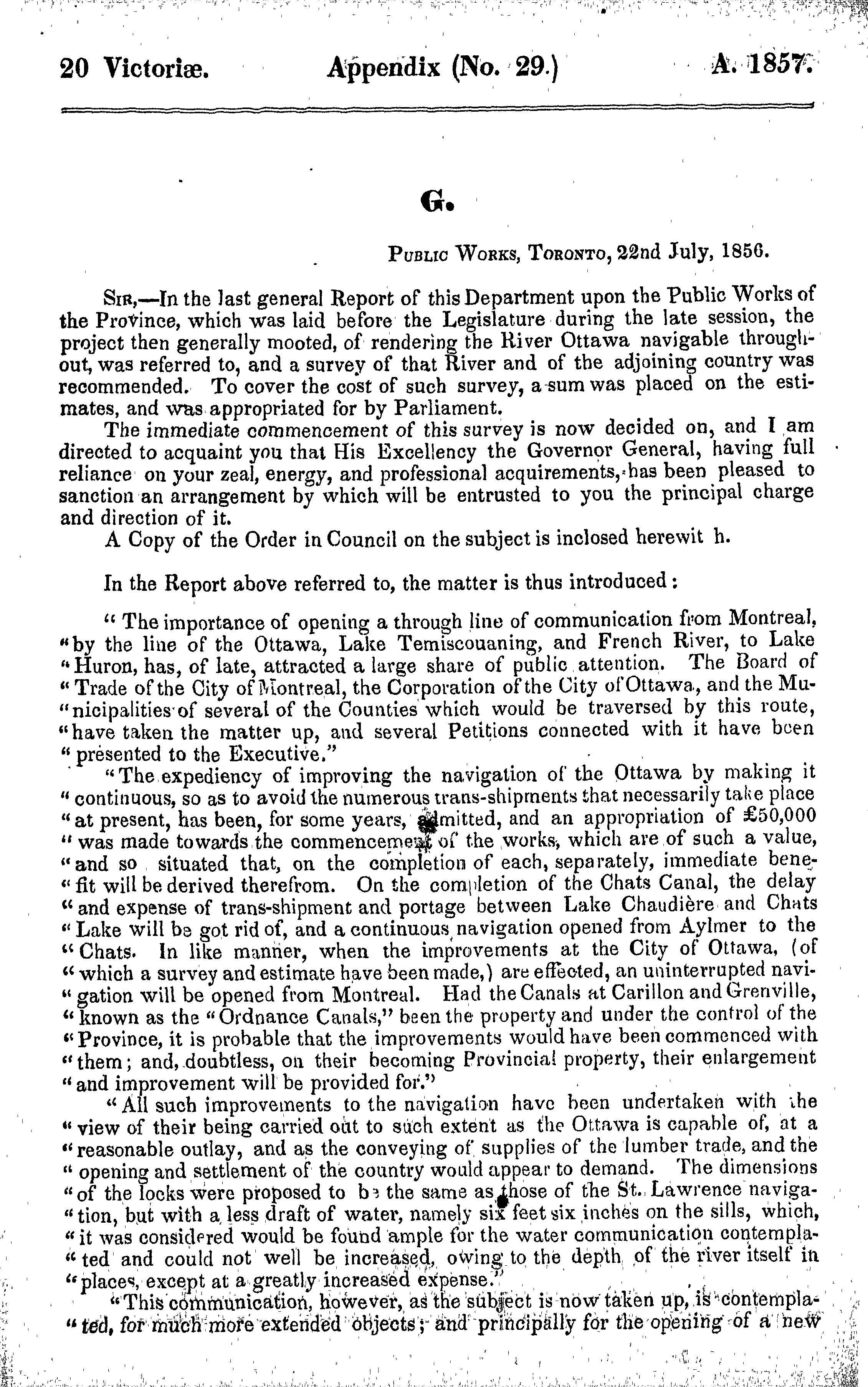 Appendix to the fifteenth volume of the journals of the Legislative Assembly of the Province of Canada ... 26th February to the 10th June, 1857 ... twentieth year of the reign of ... Queen Victoria : being the 3rd session of the 5th Provincial Parliament of Canada : 1857 (no. 5)