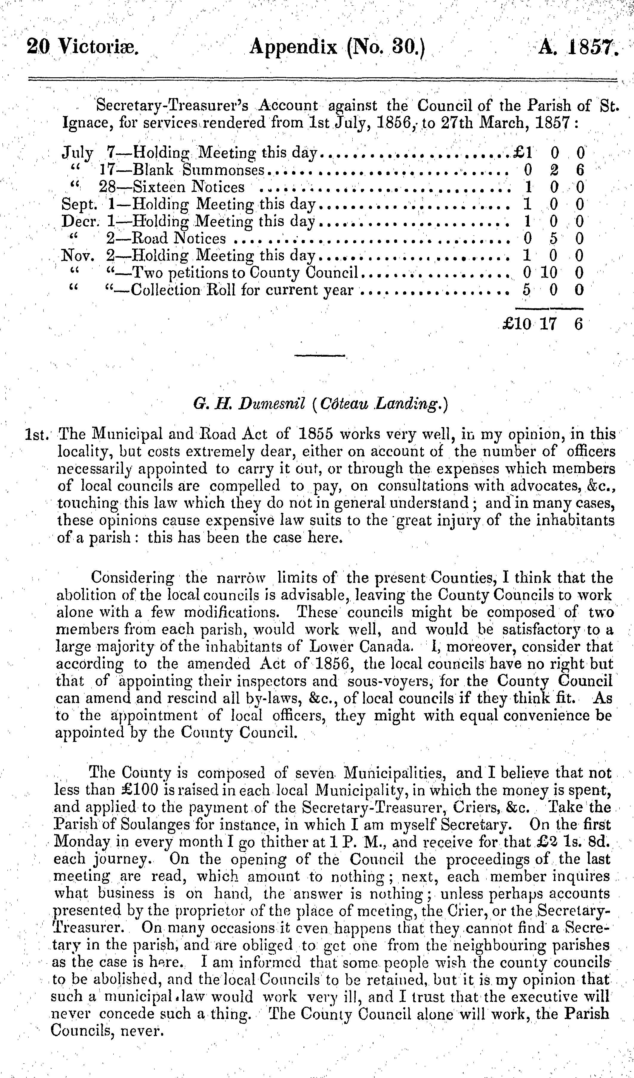 Appendix to the fifteenth volume of the journals of the Legislative Assembly of the Province of Canada ... 26th February to the 10th June, 1857 ... twentieth year of the reign of ... Queen Victoria : being the 3rd session of the 5th Provincial Parliament of Canada : 1857 (no. 6)
