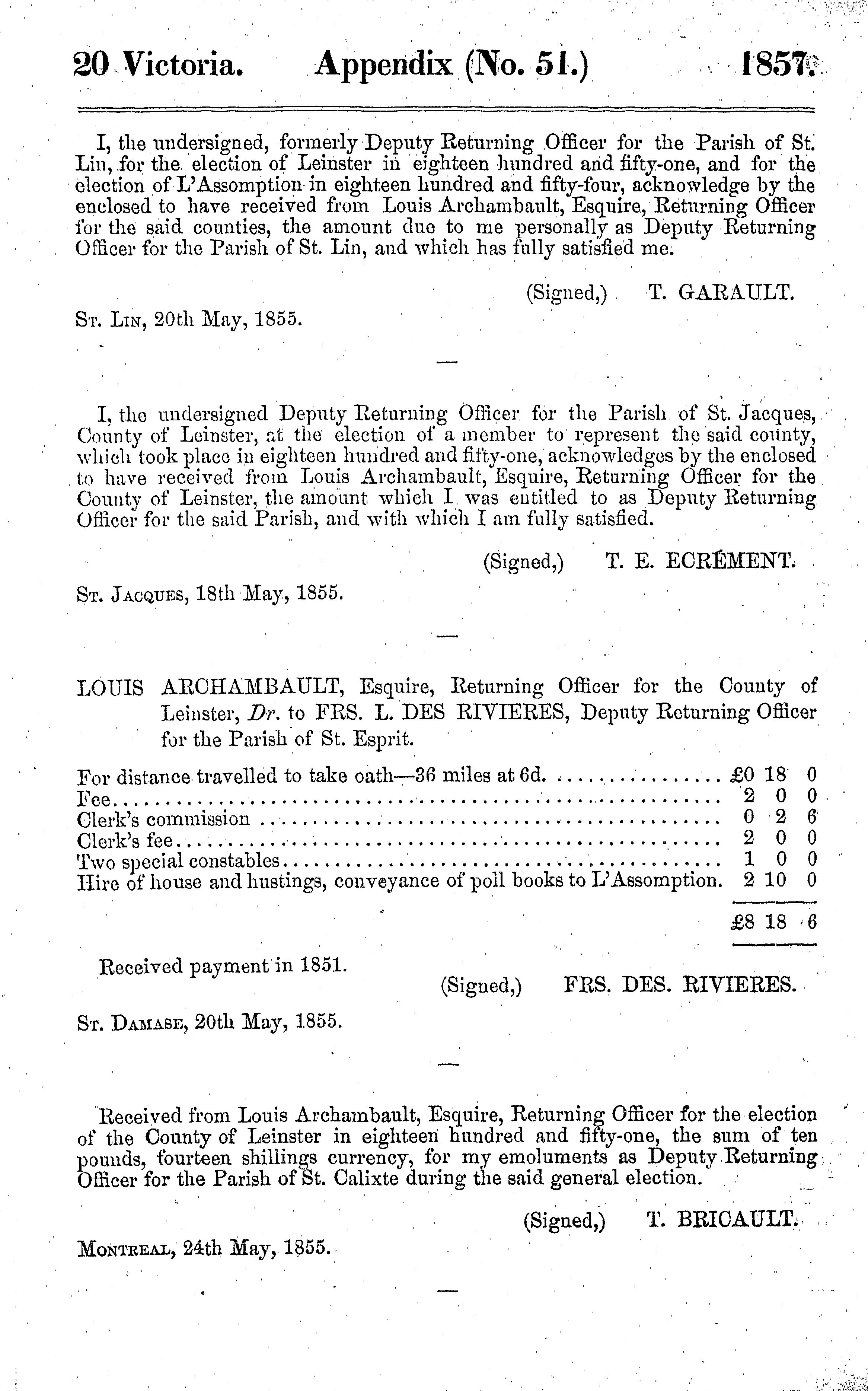 Appendix to the fifteenth volume of the journals of the Legislative Assembly of the Province of Canada ... 26th February to the 10th June, 1857 ... twentieth year of the reign of ... Queen Victoria : being the 3rd session of the 5th Provincial Parliament of Canada : 1857 (no. 8)
