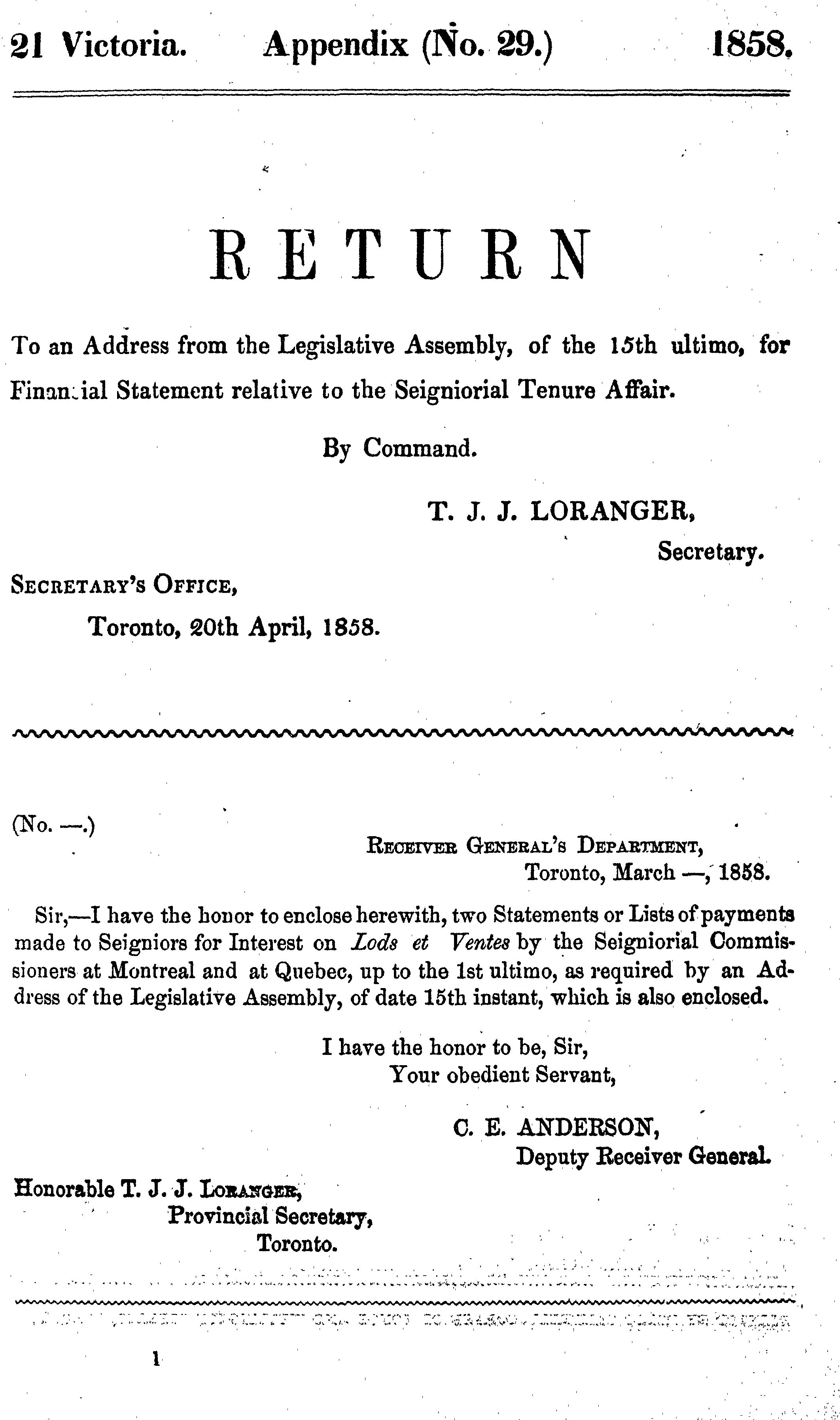 Appendix to the sixteenth volume of the journals of the Legislative Assembly of the Province of Canada ... 25th February to 16th August, 1858 ... twenty-first and twenty-second years of the reign of ... Queen Victoria : being the 1st session of the 6th Provincial Parliament of Canada : 1858 (no. 7)
