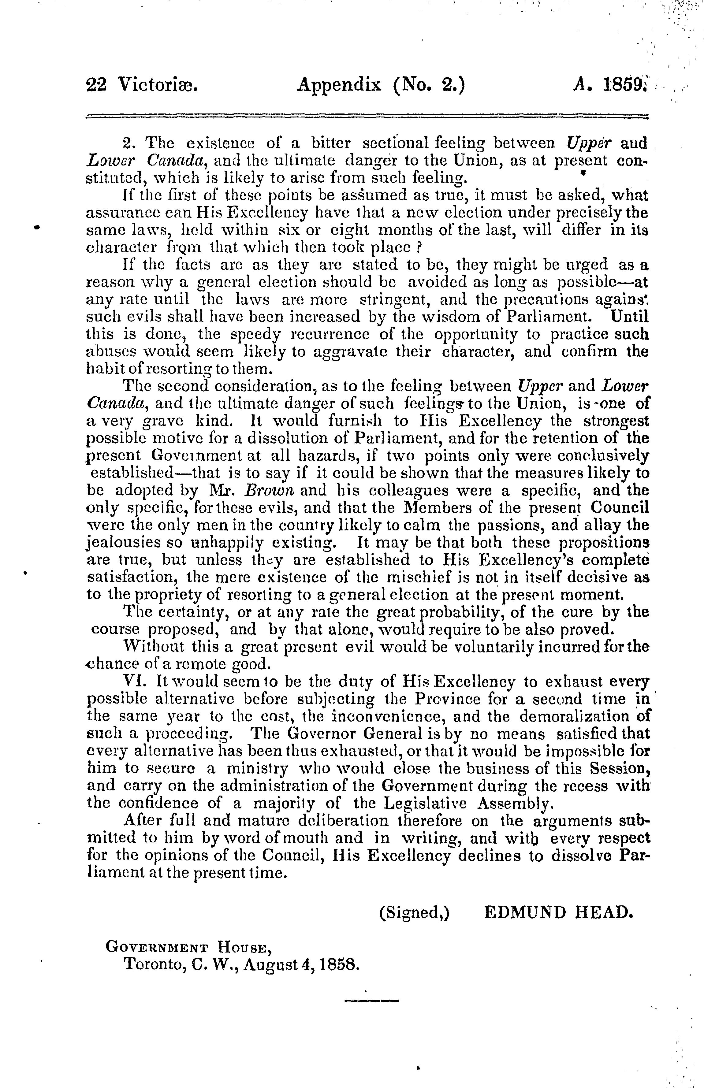 Appendix to the seventeenth volume of the journals of the Legislative Assembly of the Province of Canada ... 29th January to 4th May, 1859 ... twenty-second year of the reign of ... Queen Victoria : being the 2nd session of the 6th Provincial Parliament of Canada : 1859 (no. 1)