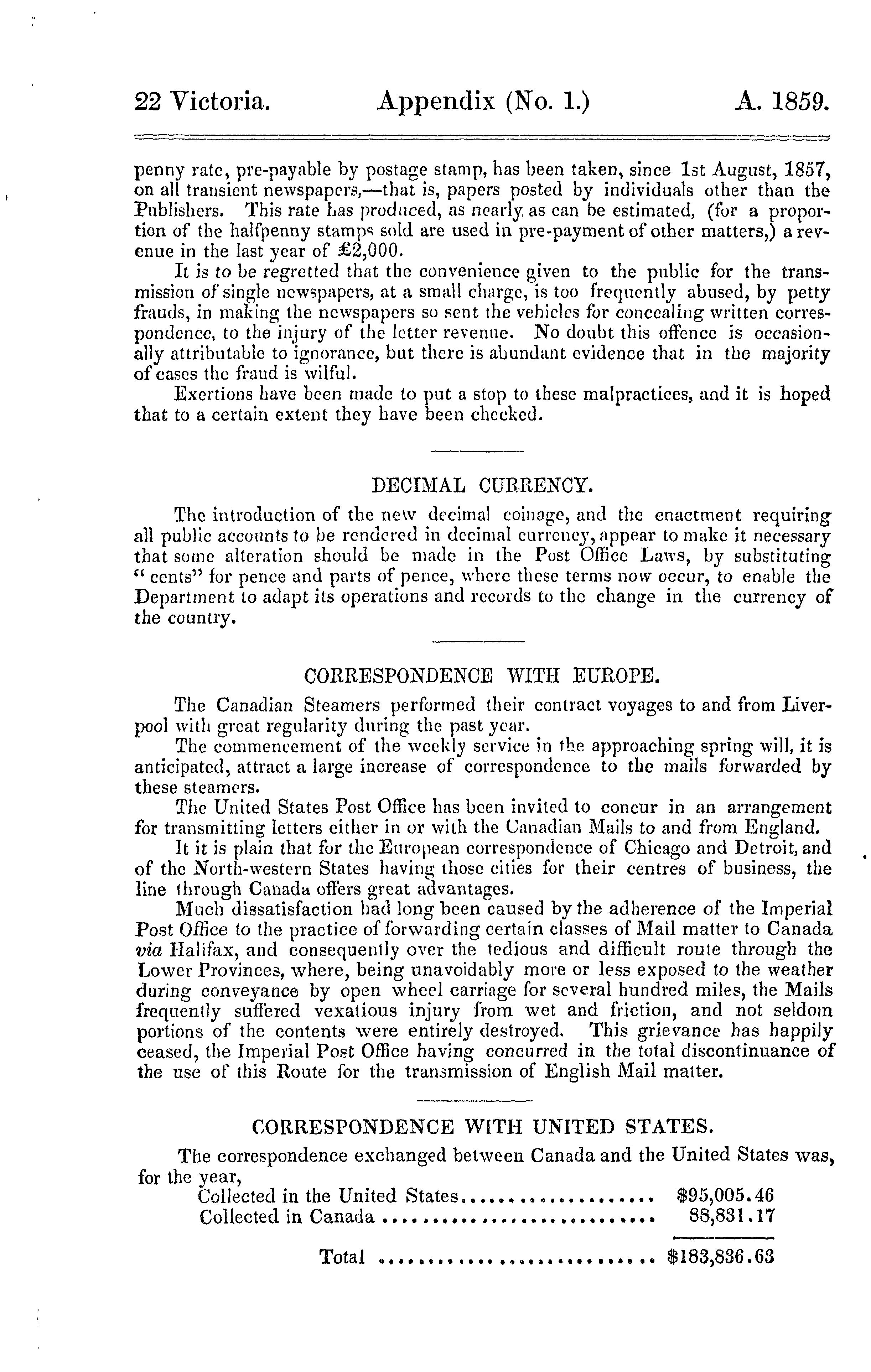 Appendix to the seventeenth volume of the journals of the Legislative Assembly of the Province of Canada ... 29th January to 4th May, 1859 ... twenty-second year of the reign of ... Queen Victoria : being the 2nd session of the 6th Provincial Parliament of Canada : 1859 (no. 1)