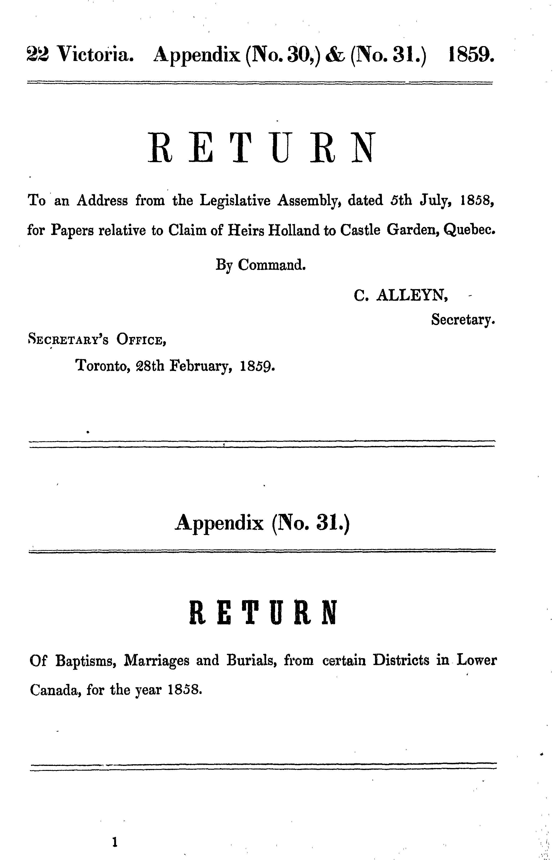 Appendix to the seventeenth volume of the journals of the Legislative Assembly of the Province of Canada ... 29th January to 4th May, 1859 ... twenty-second year of the reign of ... Queen Victoria : being the 2nd session of the 6th Provincial Parliament of Canada : 1859 (no. 3)