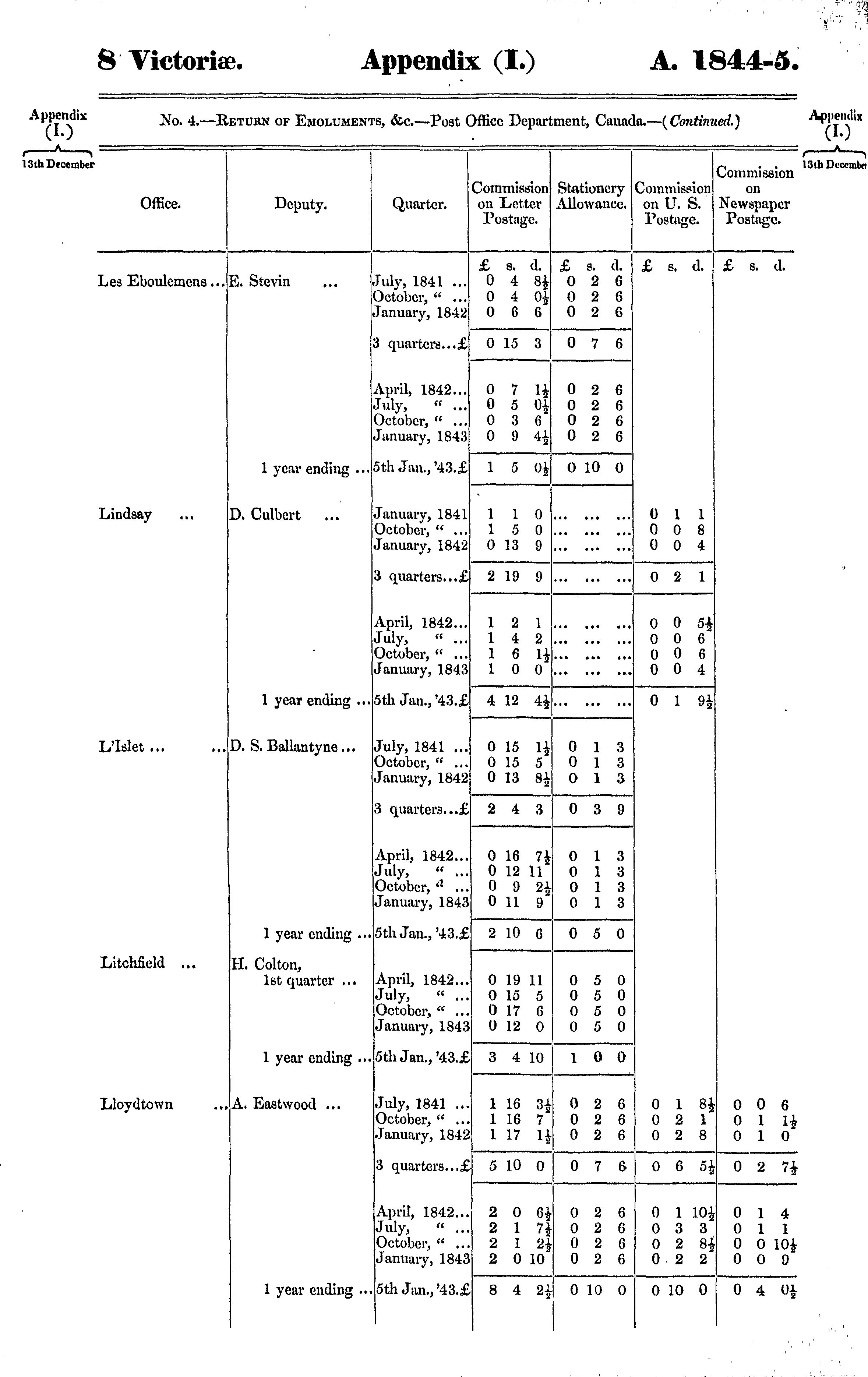 Appendix to the fourth volume of the journals of the Legislative Assembly of the Province of Canada, from the 28th day of November, 1844, to the 29th day of March, 1845, both days inclusive, and in the eighth year of the reign of Our Sovereign Lady Queen Victoria : being the first session of the second provincial Parliament of Canada : 1844/45 (no. 1)