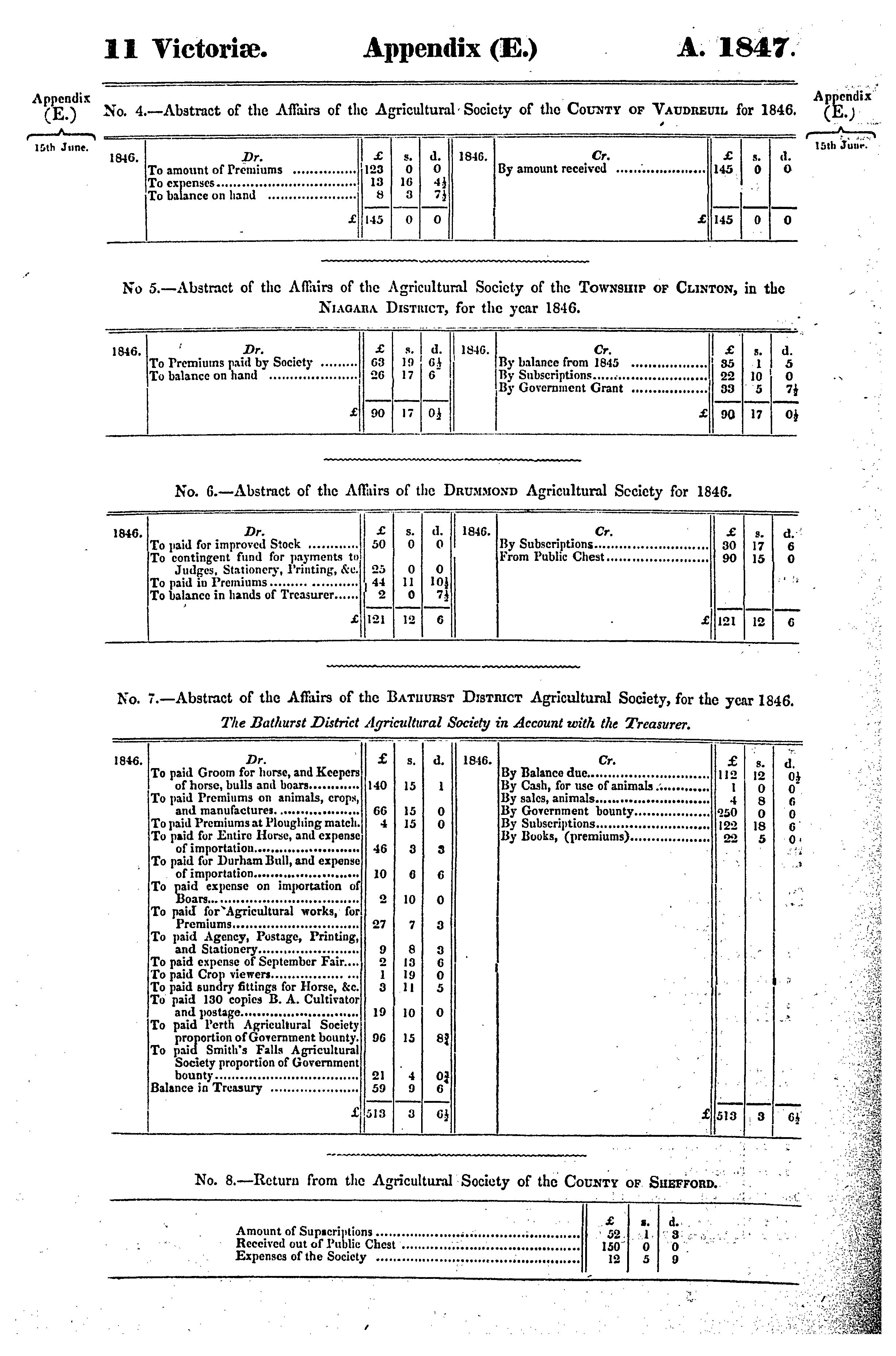 Appendix to the sixth volume of the journals of the Legislative Assembly of the Province of Canada, from the 2nd day of June to the 28th day of July, 1847, both days inclusive, and in the tenth and eleventh years of the reign of Our Sovereign Lady Queen Victoria, being the third session of the second provincial Parliament of Canada, session 1847 : 1847 (no. 1)