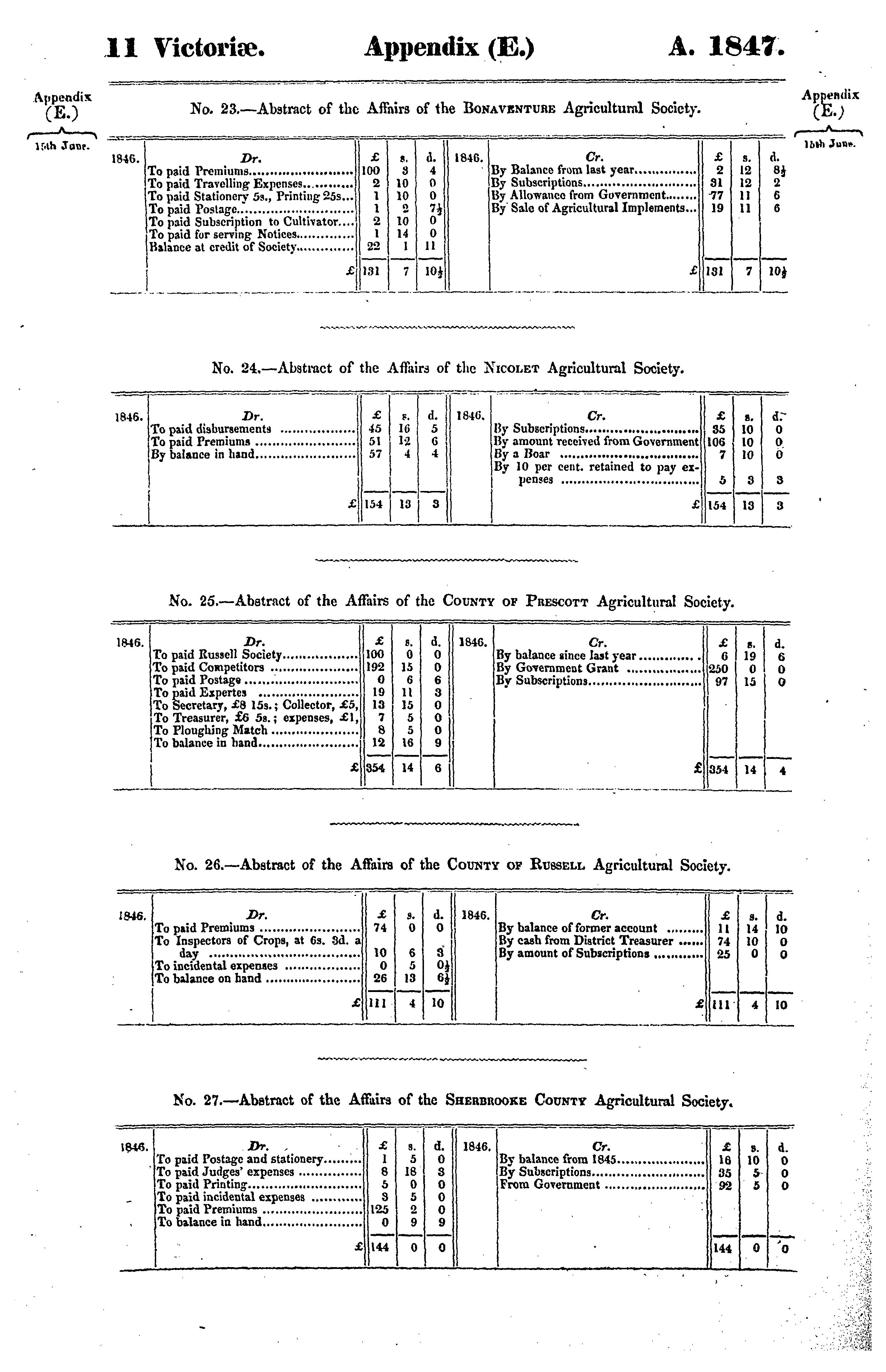Appendix to the sixth volume of the journals of the Legislative Assembly of the Province of Canada, from the 2nd day of June to the 28th day of July, 1847, both days inclusive, and in the tenth and eleventh years of the reign of Our Sovereign Lady Queen Victoria, being the third session of the second provincial Parliament of Canada, session 1847 : 1847 (no. 1)