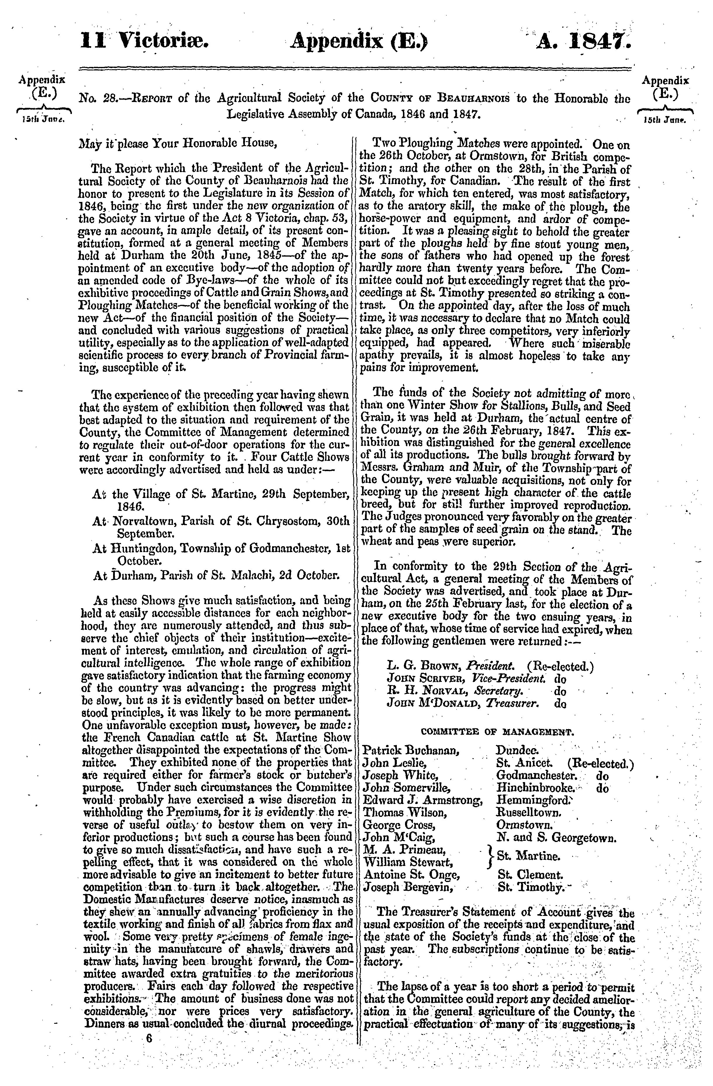 Appendix to the sixth volume of the journals of the Legislative Assembly of the Province of Canada, from the 2nd day of June to the 28th day of July, 1847, both days inclusive, and in the tenth and eleventh years of the reign of Our Sovereign Lady Queen Victoria, being the third session of the second provincial Parliament of Canada, session 1847 : 1847 (no. 1)