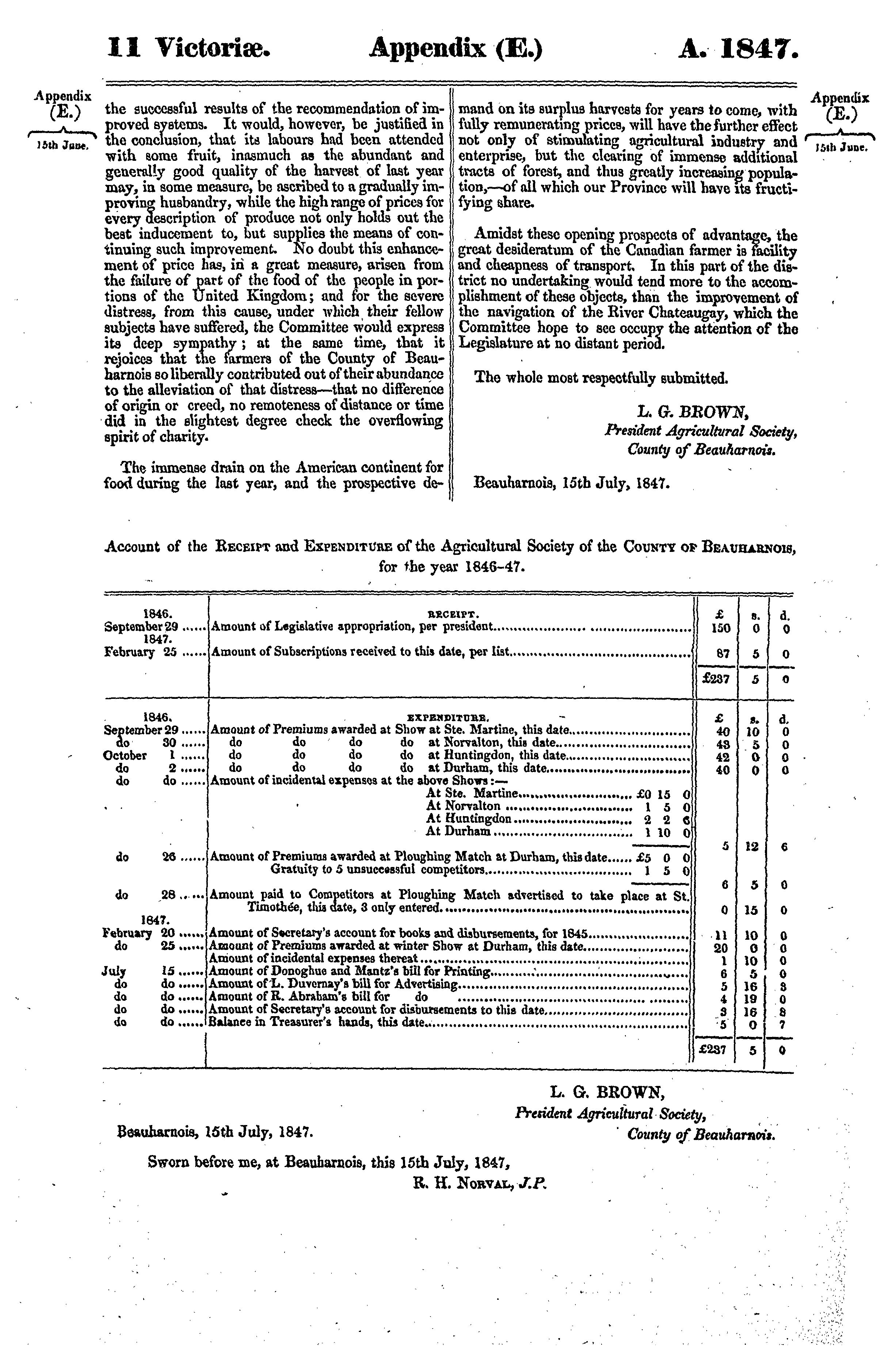 Appendix to the sixth volume of the journals of the Legislative Assembly of the Province of Canada, from the 2nd day of June to the 28th day of July, 1847, both days inclusive, and in the tenth and eleventh years of the reign of Our Sovereign Lady Queen Victoria, being the third session of the second provincial Parliament of Canada, session 1847 : 1847 (no. 1)